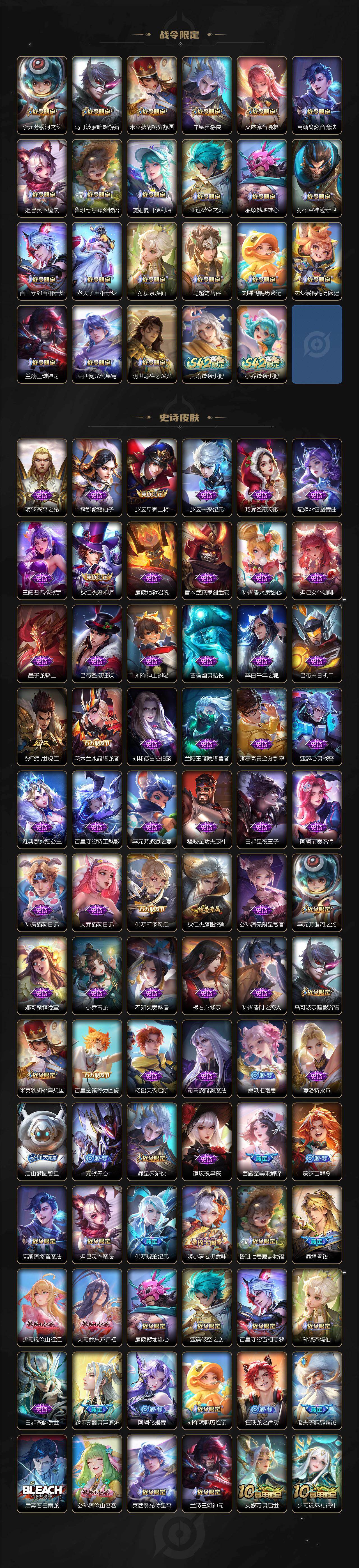 安卓Q-V8-至尊星耀III段位-128英雄-208皮肤-2典藏皮肤-1无双-5珍品传说-23传说-78史诗