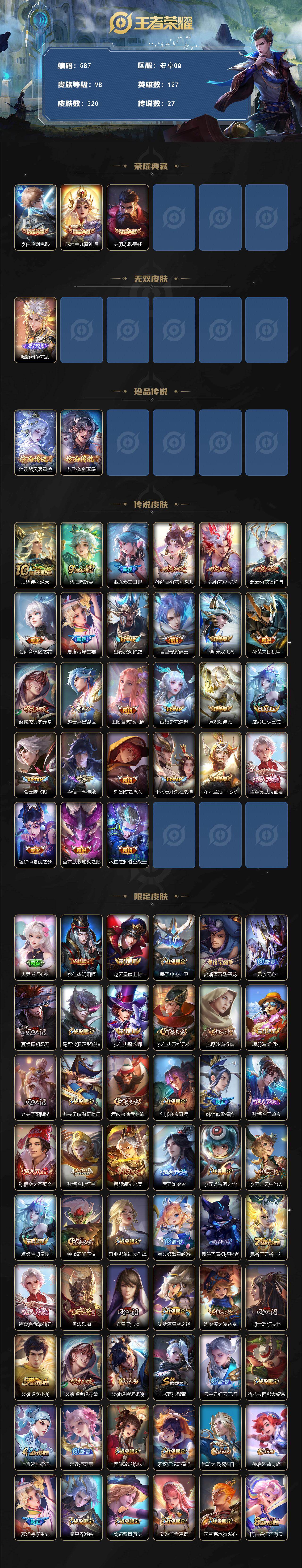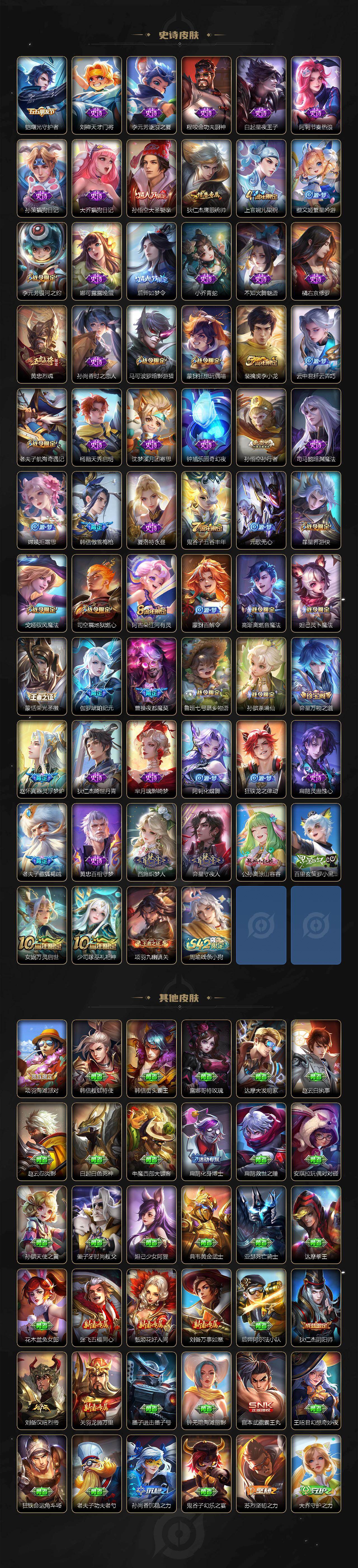 安卓Q-V8-永恒钻石IV段位-127英雄-320皮肤-3典藏皮肤-1无双-2珍品传说-27传说-92史诗