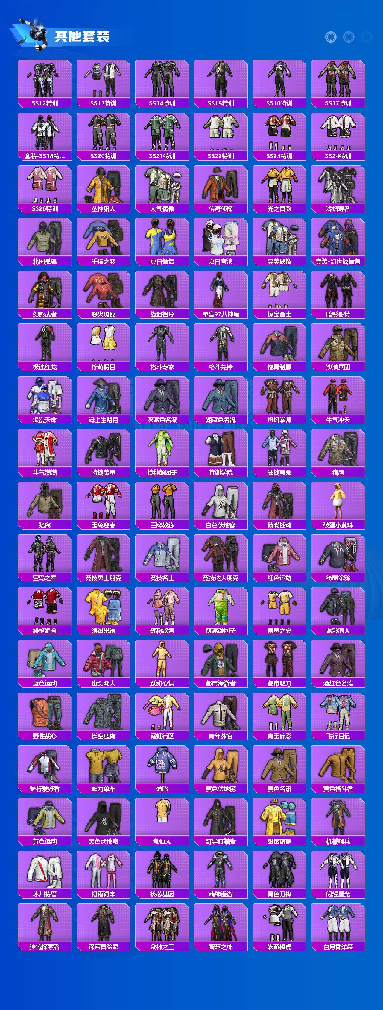 【粉色套装】:粉装-华贵君王,粉装-香水柠檬,粉装-飓风飞鹰,粉装-精灵娃娃,粉装-紫电风暴,粉装-银红美神,粉装-霞光圣骑,粉装-寒光使者,粉装-第五大道,角色-呆萌星弥,角色-小可学妹,角色-女娲灵识,角色-智耀战神