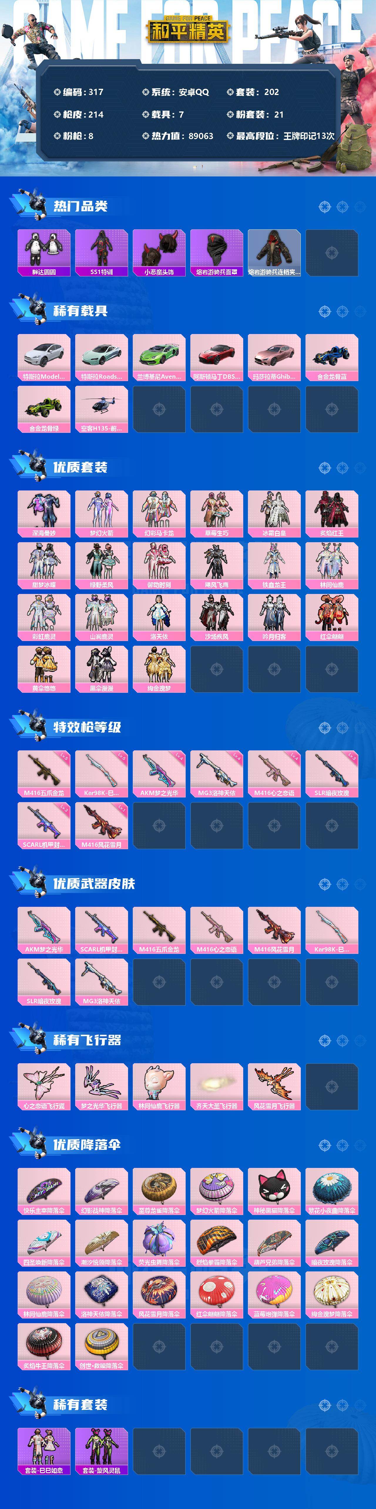 【商品标题】:安卓 手Q-21粉装-8特效枪-7载具-5粉色飞行器-89063热力值-13王牌印记-202套装-214枪皮