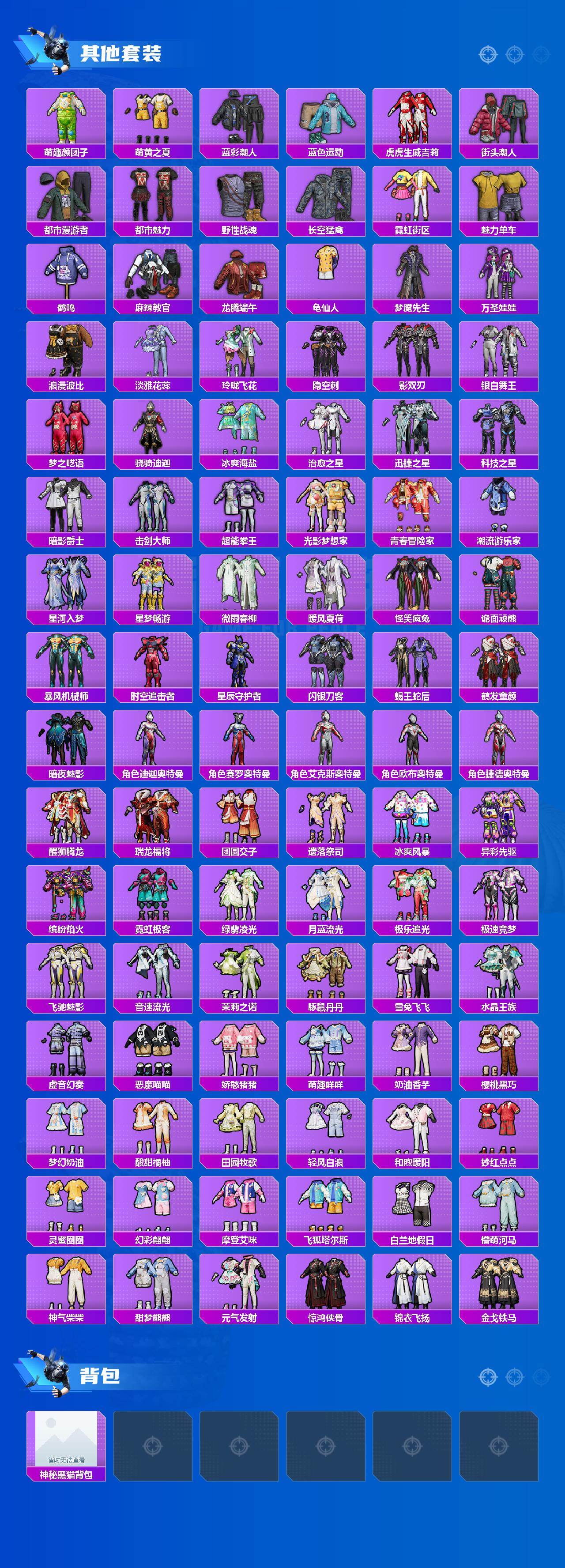 【粉色套装】:粉装-蝶舞迷情,粉装-苍蓝魅影,粉装-绚金战神,粉装-王牌四分卫,粉装-绮梦青鸾,粉装-星之彼岸,粉装-甜梦冰蝶,粉装-绿野