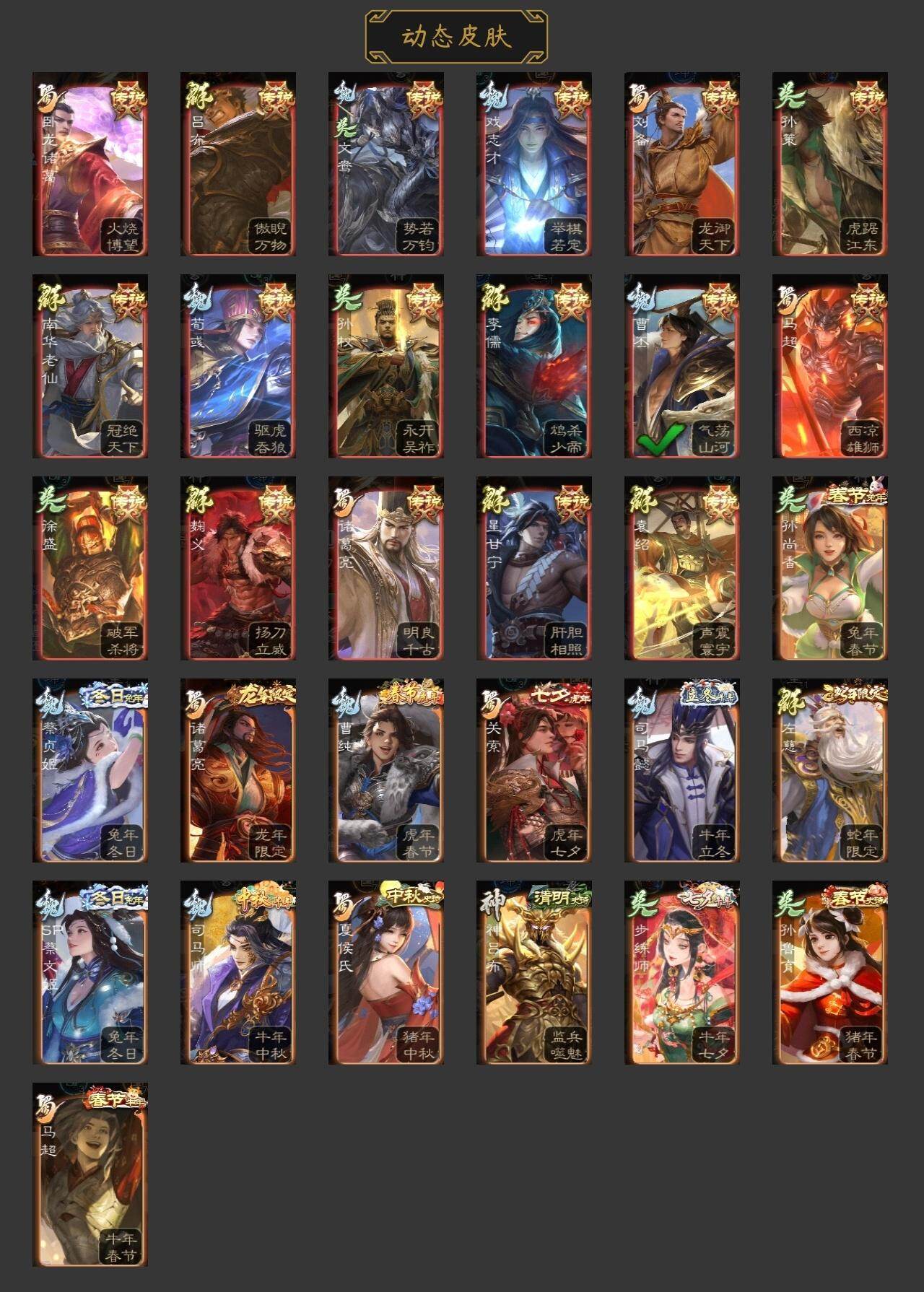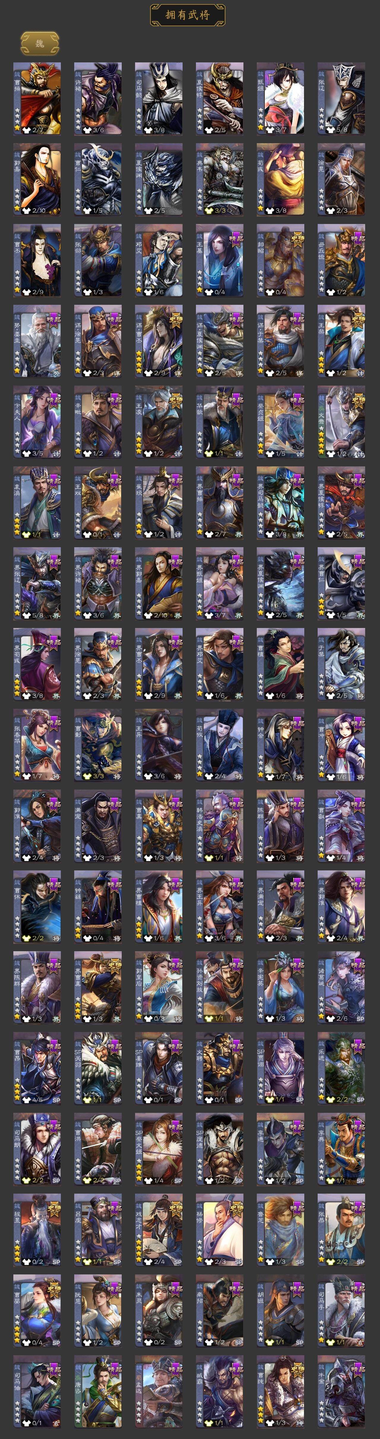 神吕布,神赵云,神陆逊,神吕蒙,神周瑜,王粲,杨修,文鸯,王凌,界曹真,郝昭,曹婴,曹纯,戏志才,谋曹丕,关索,谋夏侯氏,谋赵云,谋马超,诸葛瞻,张星彩,沙摩柯,界黄忠,花鬘,周处,骆统,留赞,界朱然,界徐盛,贺齐,左慈,星黄忠,麹义,南华老仙,沮授,界左慈,界李儒,卑弥呼,谋张角