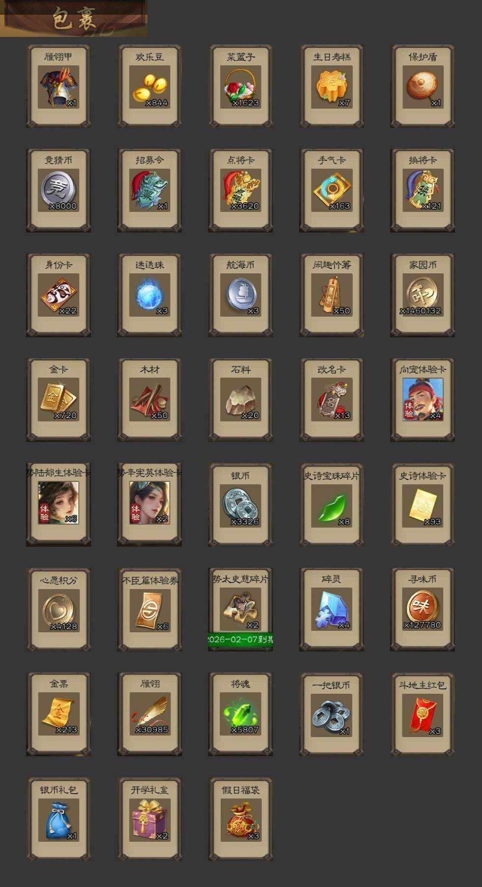 官阶:大将军;VIP等级:VIP10;史诗武将数量:40;动态皮肤数量:30;武将总数:369;史诗宝珠数量:0;将魂数量:5807;神将:5;魏国史诗武将:16;蜀国史诗武将:9;吴国史诗武将:6;群史诗武将:11