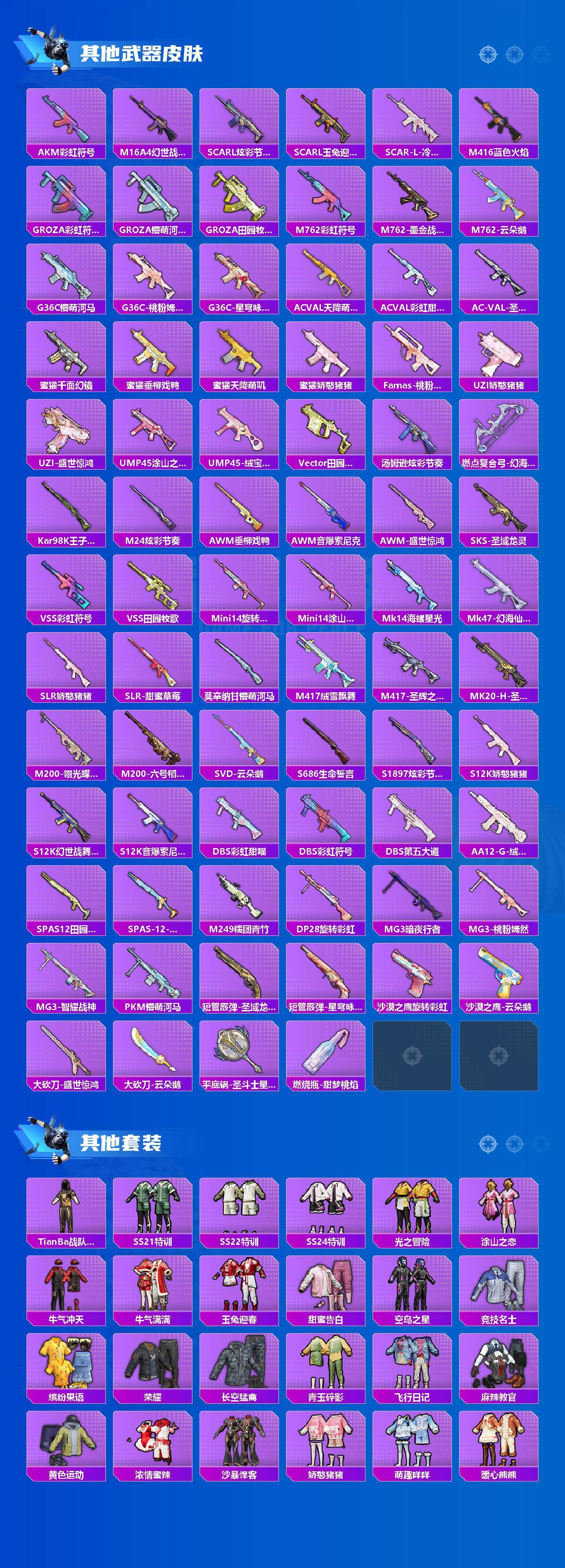 【粉色枪皮等级】:AKM-幻海仙踪(二级),M16A4-垂柳戏鸭(四级),M416-五爪金龙(五级),GRO