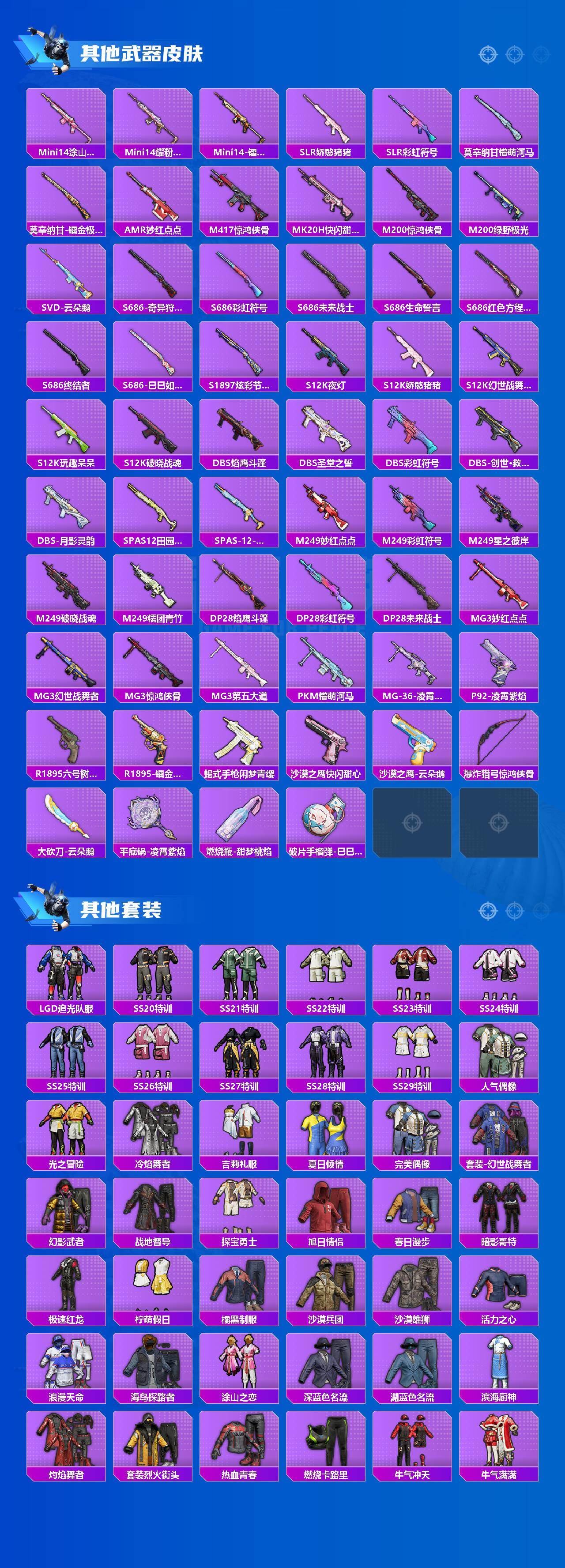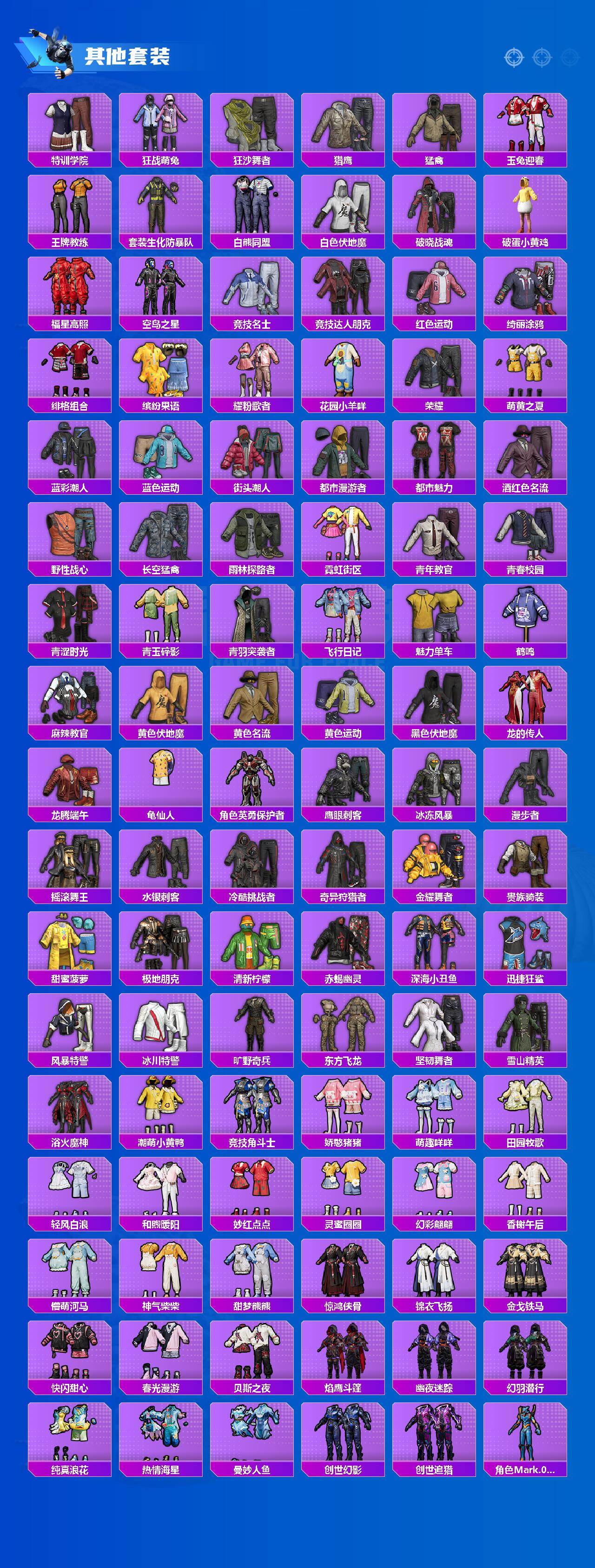 【热门品类】:粉装-梦幻火箭,粉装-繁龙极客,绝对防御上衣,套装-浪漫天命,套装-赤蝎幽灵,套装-都市猎人,套装-派对舞王,套装-深海小丑鱼,套装-小丑鱼,套装-奇异狩猎者,角色-军刀雅典娜,套装-胖达团团,套装-天网终结者,套装-金羽特工,套装-龟仙人,套装-潮萌小黄鸭,套装-暗影哥特,角色-Mark.06,熔岩游骑兵面罩,师父专用外套,熔岩游骑兵连帽夹克