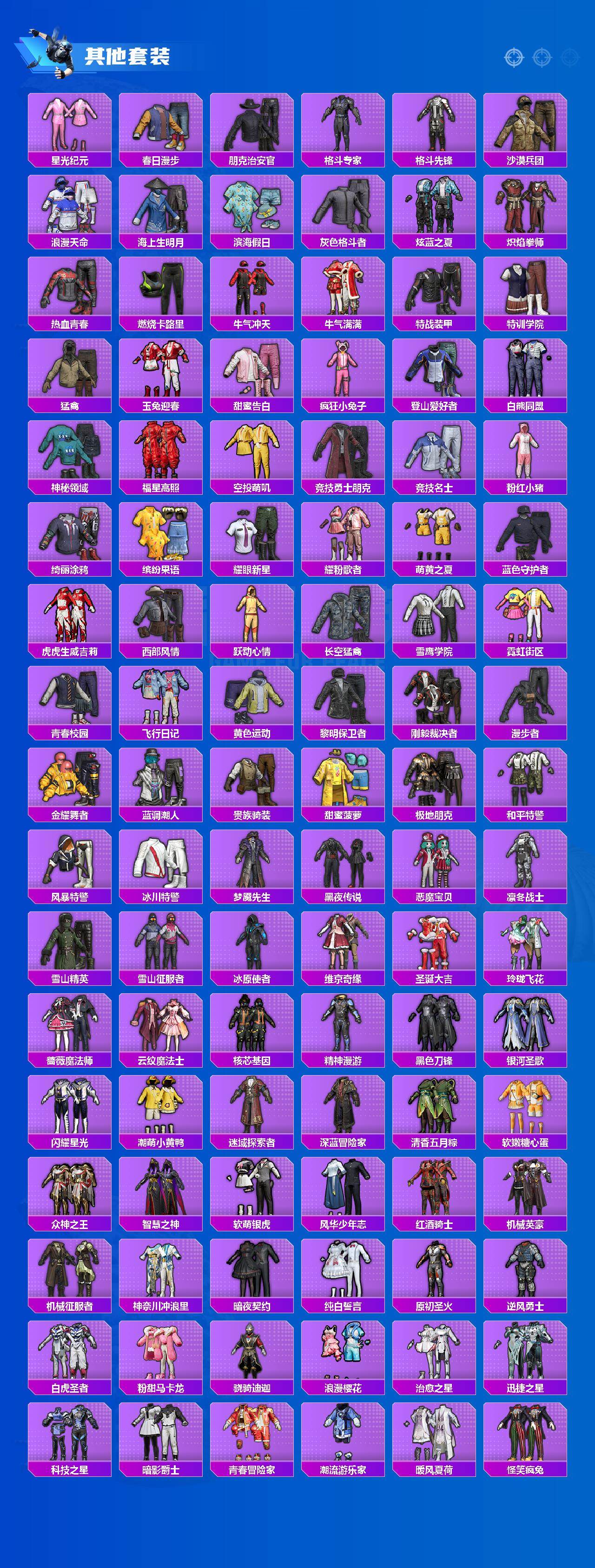 【粉色套装】:粉装-守护骑士,粉装-深渊皇后,粉装-精灵迷巫,粉装-PEL轰鸣竞梦者,粉装-冰霜白皇,粉装-童趣迷兔,粉装-炙焰红王,粉装-香水柠檬,粉装-骨龙祭渊,粉装-暗夜玫瑰,