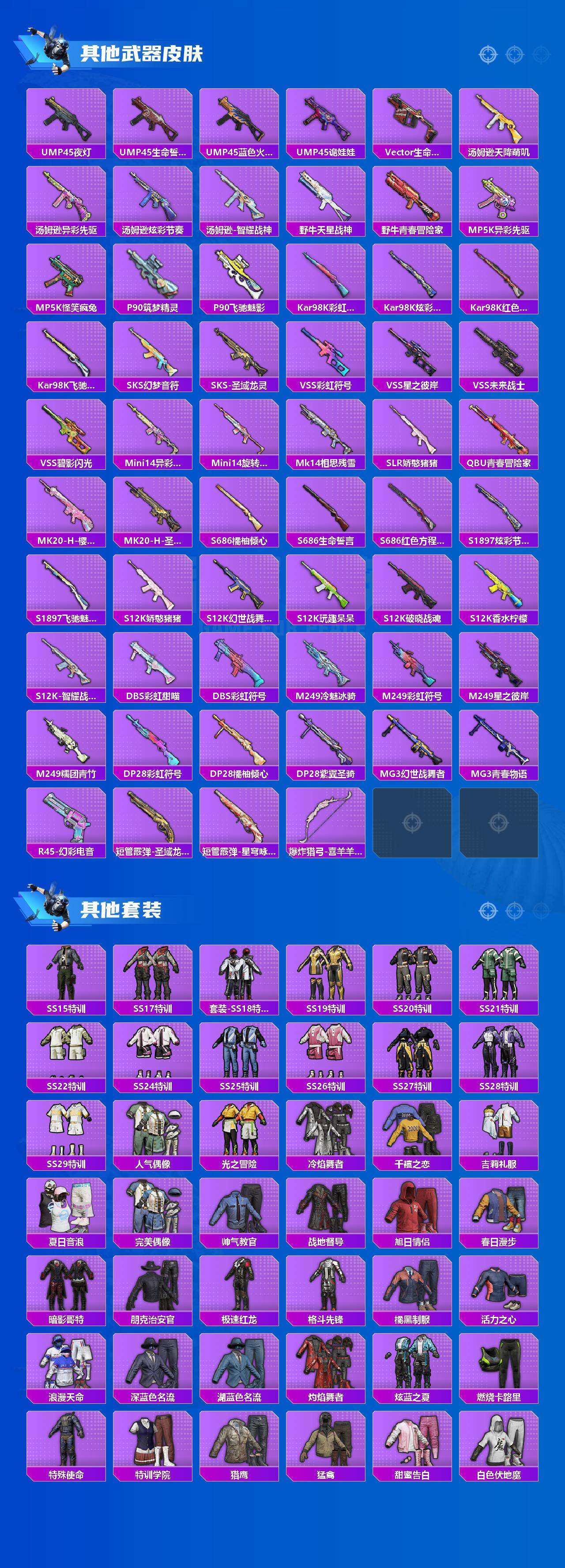 【粉色套装】:粉装-海盐物语,粉装-薄荷物语,粉装-恐龙拽拽,粉装-绚丽摇曳,粉装-闪耀律动,粉装-橘柚倾心,粉装-赤焰黑爵,粉装-紫电风暴,粉装-冰川红玫,角色-智耀战神