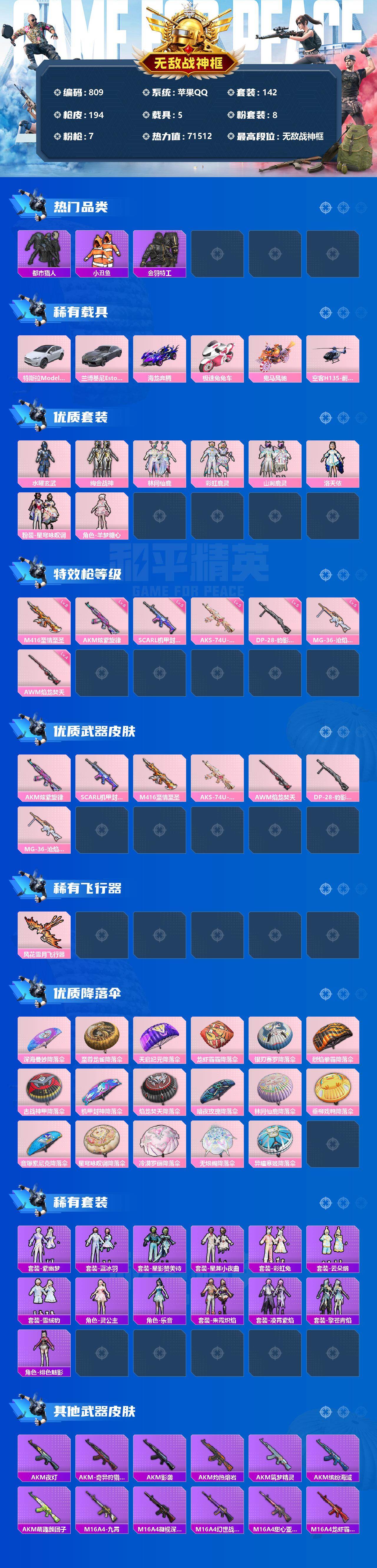 【商品标题】:苹果 手Q-无敌战神框-8粉装-7特效枪-5载具-1粉色飞行器-71512热力值-8王牌印记-142套装-194枪皮