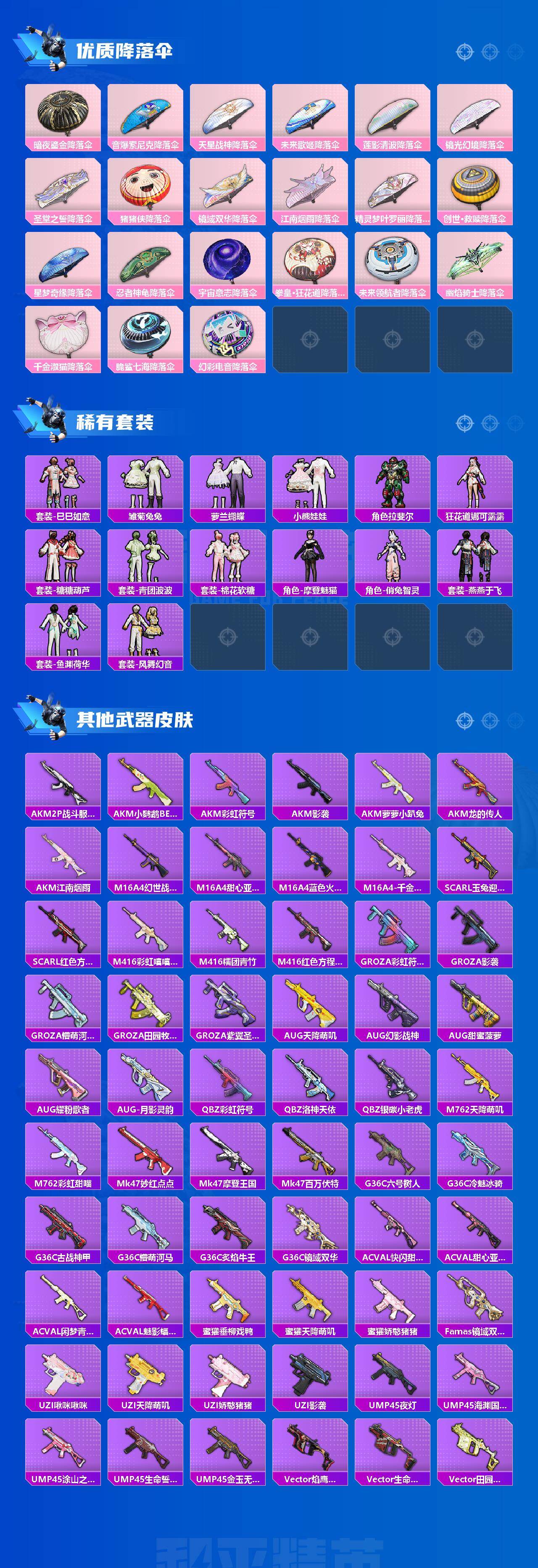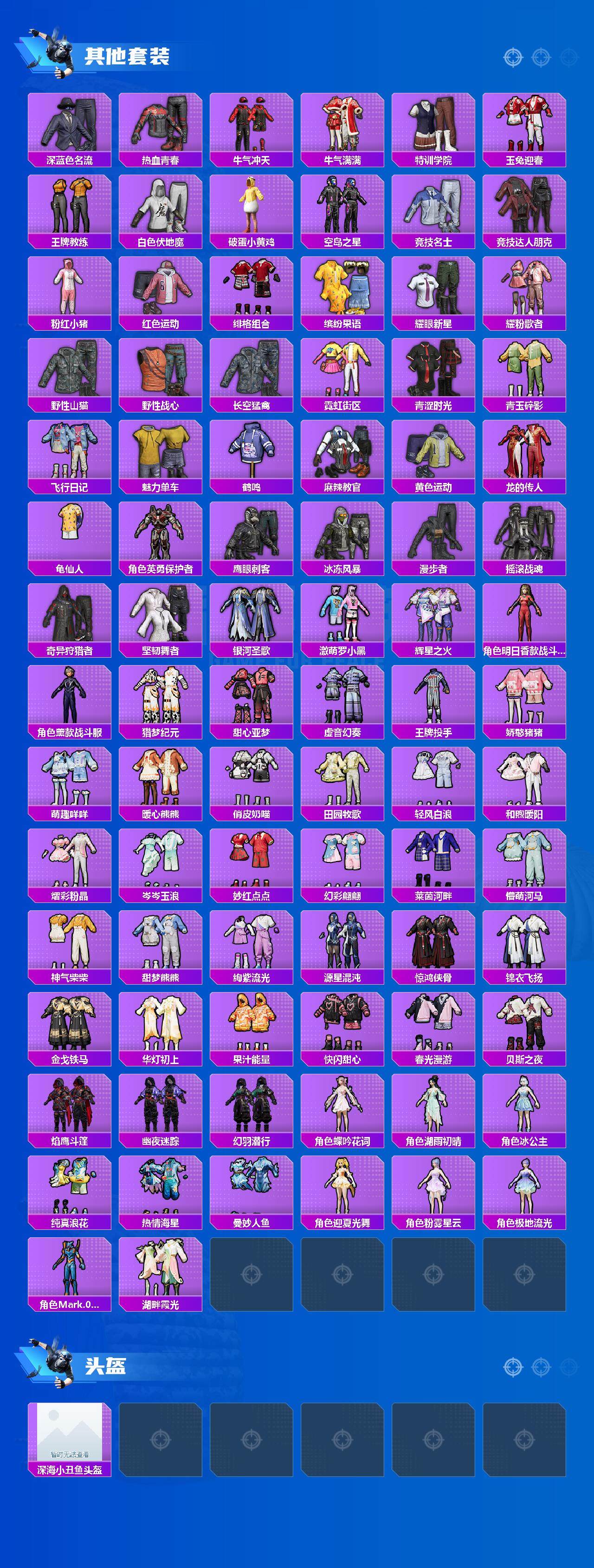 【热门品类】:粉装-梦幻火箭,套装-浪漫天命,套装-小丑鱼,套装-奇异狩猎者,套装-忍者信条,套装-龟仙人,套装-暗影哥特,套装-粉红小猪,角色-Mark.06