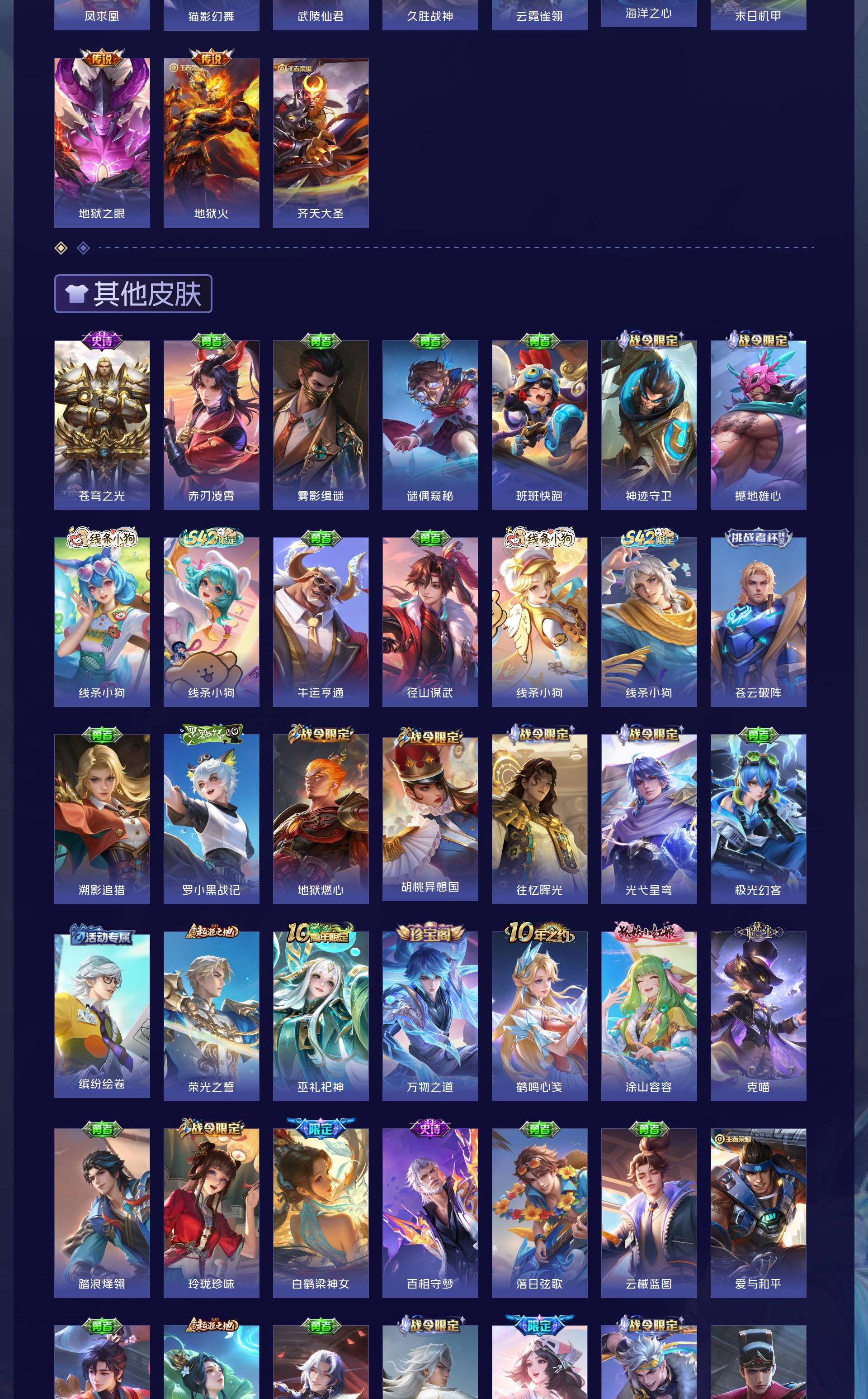 V10 皮肤432 英雄129 永恒钻石 荣耀典藏6 珍品无双1 无双皮肤1 珍品传说3 传说52 其他皮肤378
