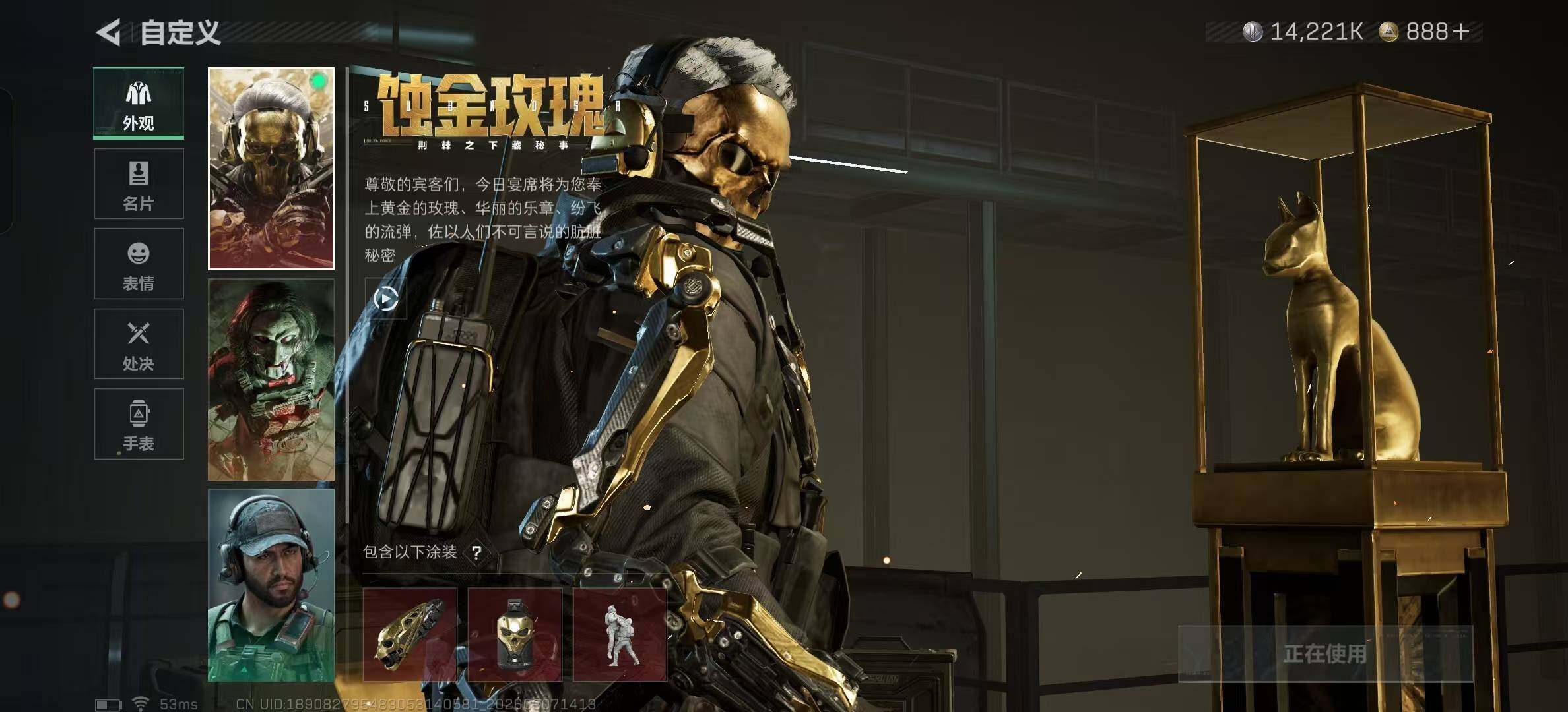 【传说外观】:M4A1突击步枪-蚀金玫瑰,M4A1突击步枪-阿米娅,ASh-12战斗步枪-鹅鸭杀,SG5