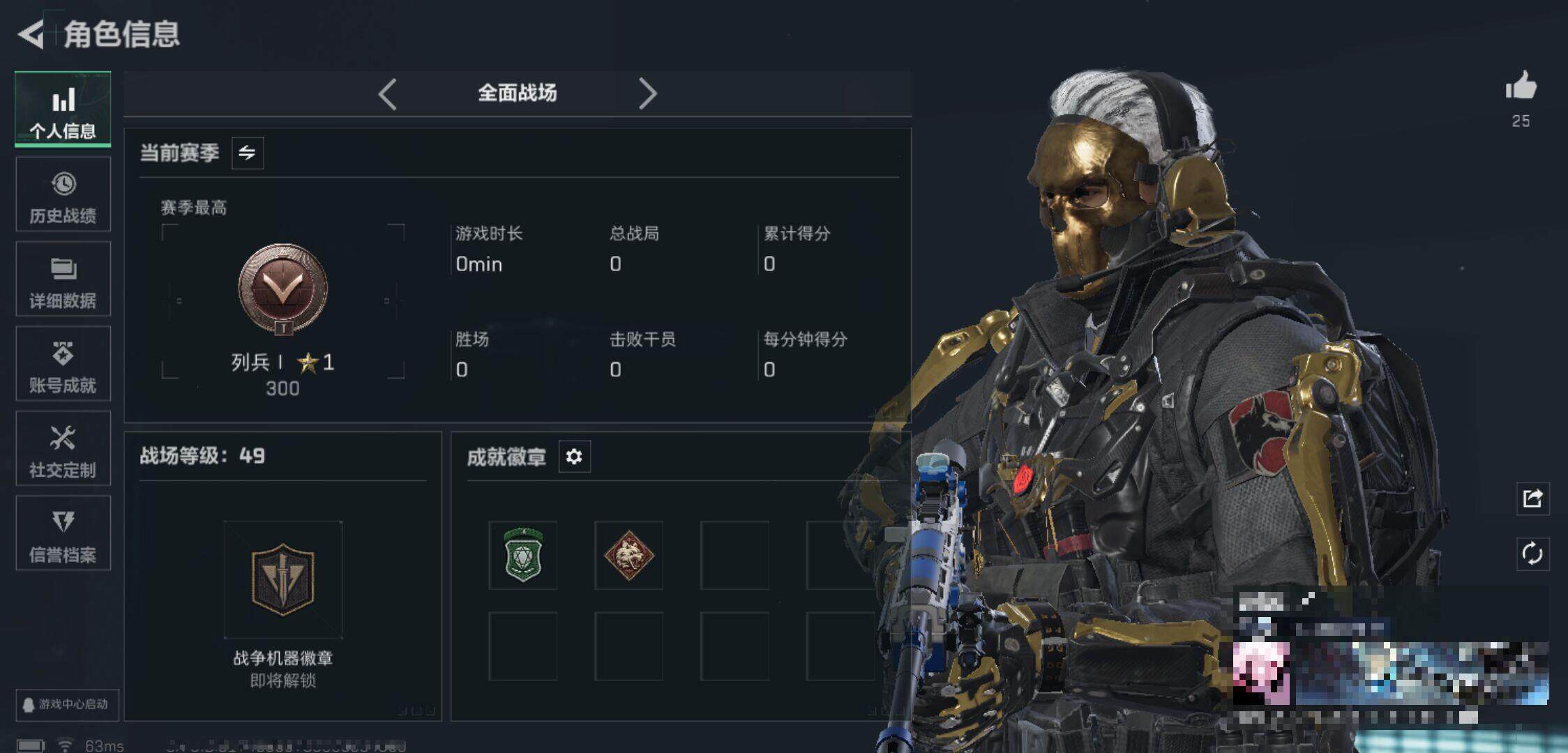 总资产:23.3M,哈夫币:4W,武器皮肤216,烽火60级:铂金,战场49级:列兵,通行证1级:通行证免费版 【安全箱】基础安全箱;【特勤处等级】仓库LV.5,指挥中心LV.5,训练中心LV.6,靶场LV.4,潜水中心LV.0,收藏室LV.0;【干员皮肤5】:红狼蚀金玫瑰,骇爪水墨云图,威龙飞虎,威龙壮志凌云,无名夜鹰;【已有捆绑包8】:蚀金玫瑰捆绑包,水墨云图捆绑包,影锋捆绑包,幻想曲捆绑包,黑海捆绑包,飞虎捆绑包,几何解构捆绑包,曙光捆绑包;【近战皮肤】:近战武器-黑海,近战武器-影锋,近