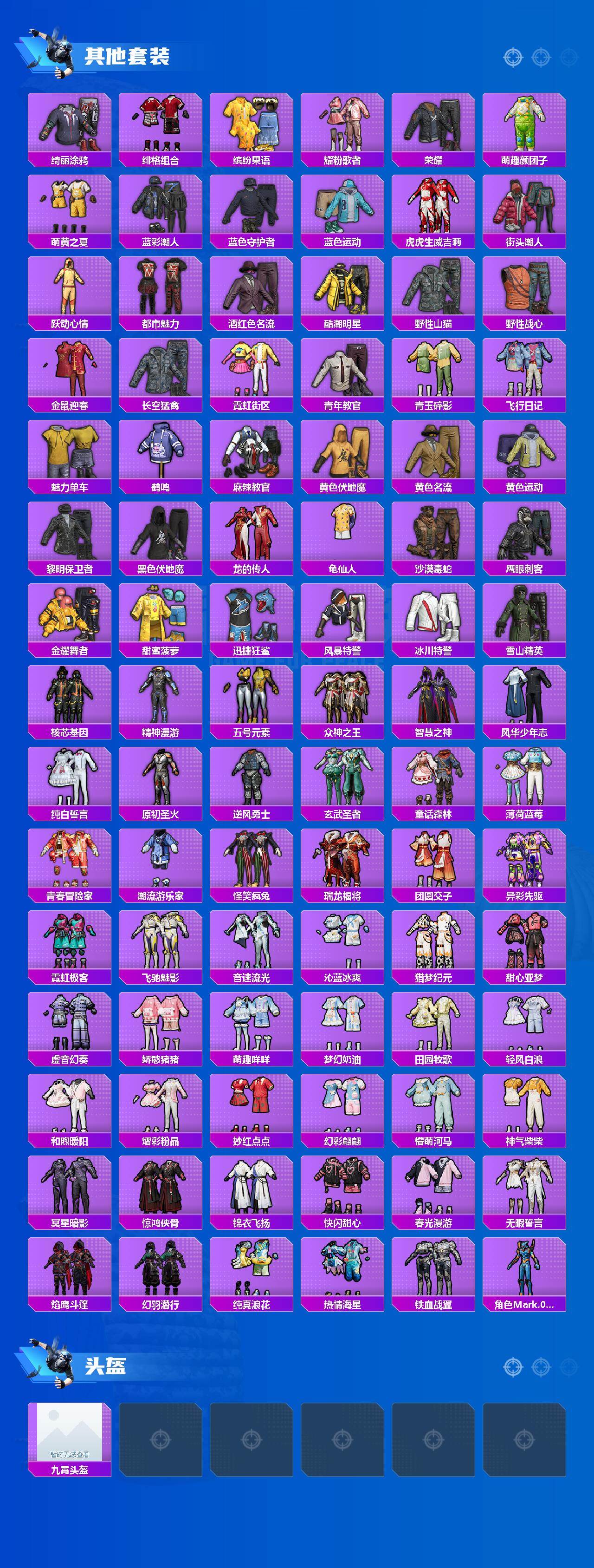 【粉色套装】:粉装-梦幻火箭,粉装-碧影闪光,粉装-薄荷物语,角色-冰炎战车,角色-圣堂之誓,粉装-星穹咏叹调