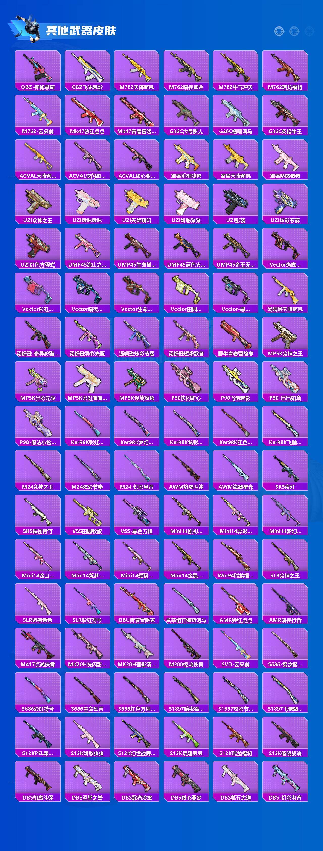 【粉色枪皮等级】:AKM-星际浪客(七级),Kar98K-巳巳如意(五级),DP-28