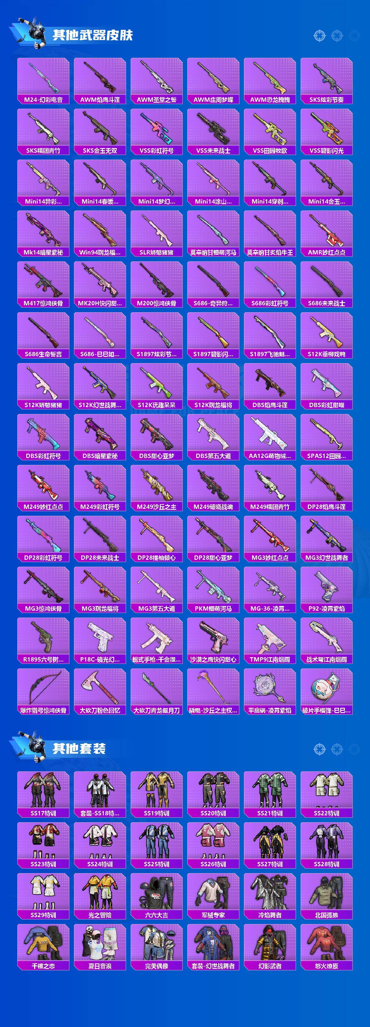【热门品类】:粉装-梦幻火箭,粉装-缤纷油彩,绝对防御上衣,套装-浪漫天命,套装-都市猎人,套装-深海小丑鱼,套装-奇异狩猎者,套装-金羽特工,角色-2B战斗服款,套装-龟仙人,套装-暗影哥特,套装-粉红小猪,角色-Mark.06,大砍刀-青龙偃月刀