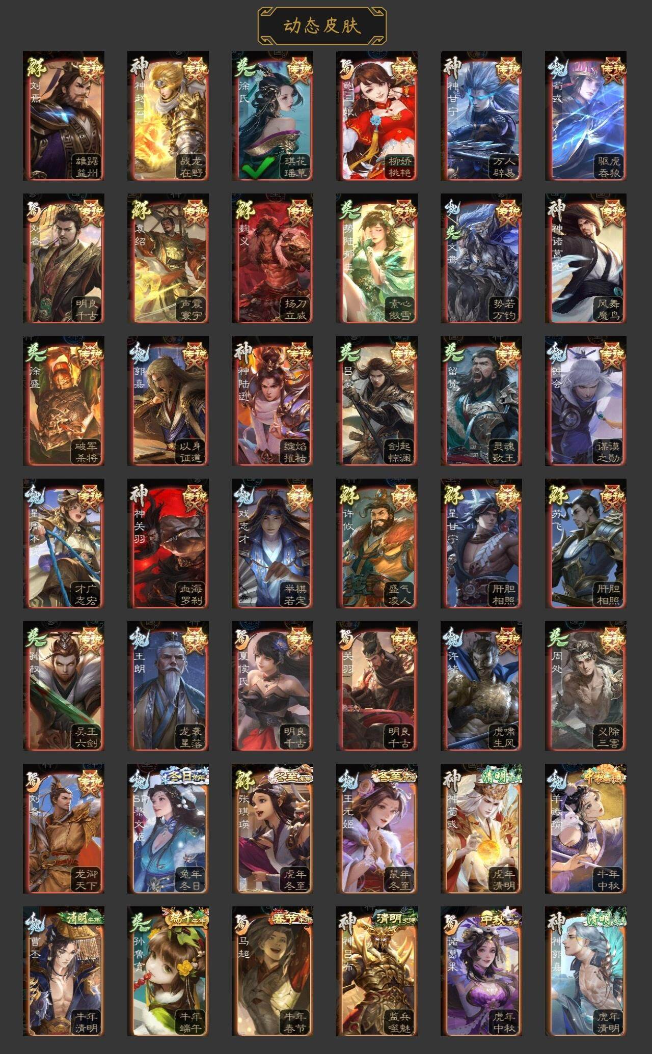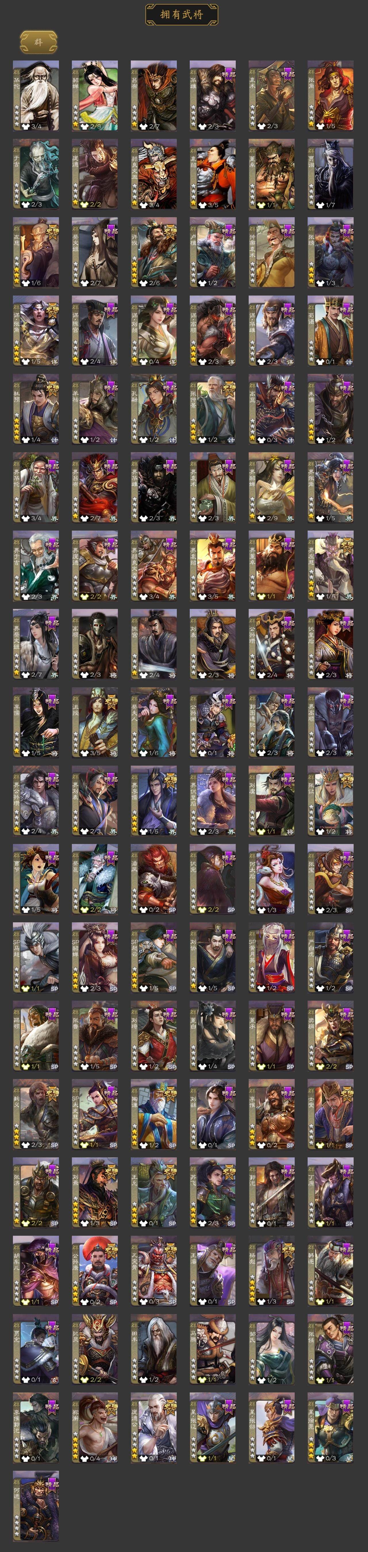 神吕布,神赵云,神陆逊,神甘宁,神张辽,神郭嘉,神太史慈,神荀彧,神吕蒙,神周瑜,神诸葛亮,星周不疑,王粲,杨修,羊徽瑜,文鸯,王元姬,王朗,马钧,界钟会,界于禁,界曹真,嵇康,郝昭,陈琳,曹纯,戏志才,刘晔,谋曹丕,关索,马云騄,诸葛瞻,周群,赵襄,张星彩,王平,沙摩柯,谯周,