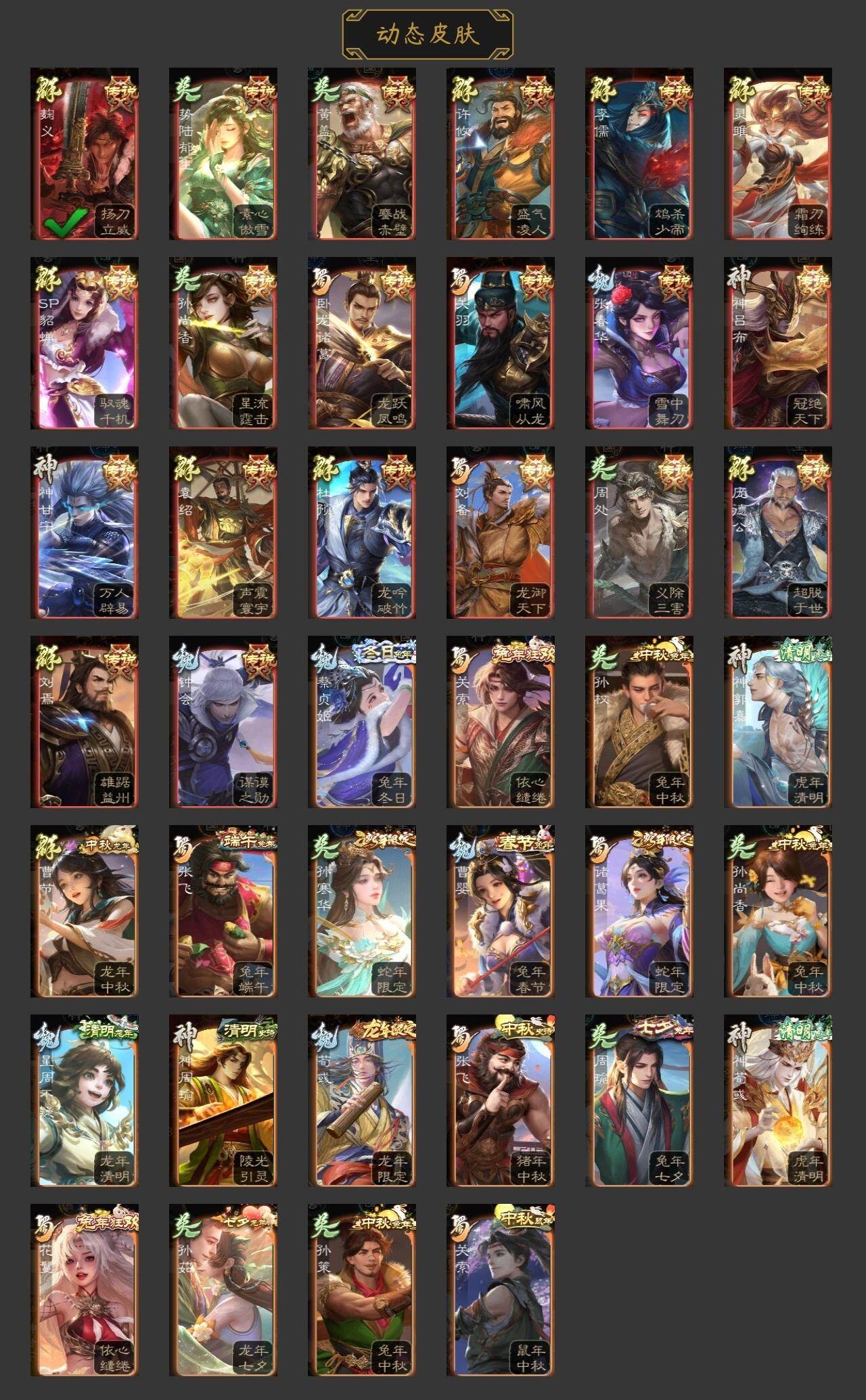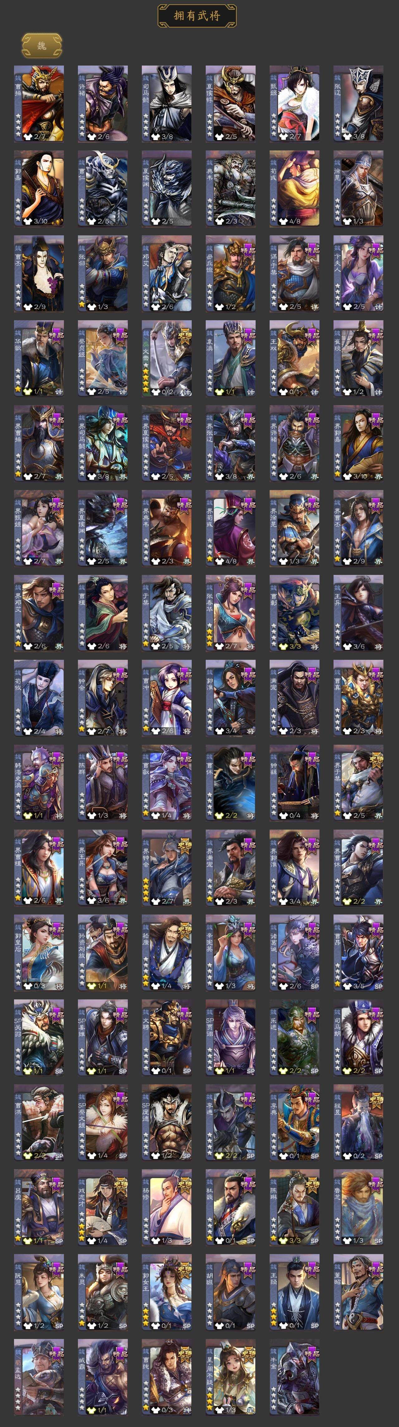 神吕布,神甘宁,神郭嘉,神孙策,神荀彧,神吕蒙,神周瑜,郭女王,星周不疑,杨修,文鸯,界钟会,界于禁,嵇康,陈琳,曹纯,戏志才,谋黄忠,谋赵云,谋马超,诸葛瞻,周群,赵襄,谯周,花鬘,董允,谋黄盖,周处,留赞,界徐盛,贺齐,谋孙权,十常侍,界沮授,左慈,张让,星黄忠,审配,麹义,刘