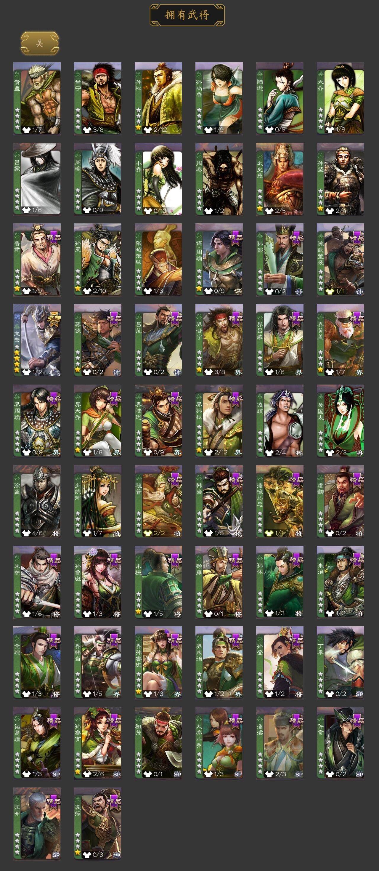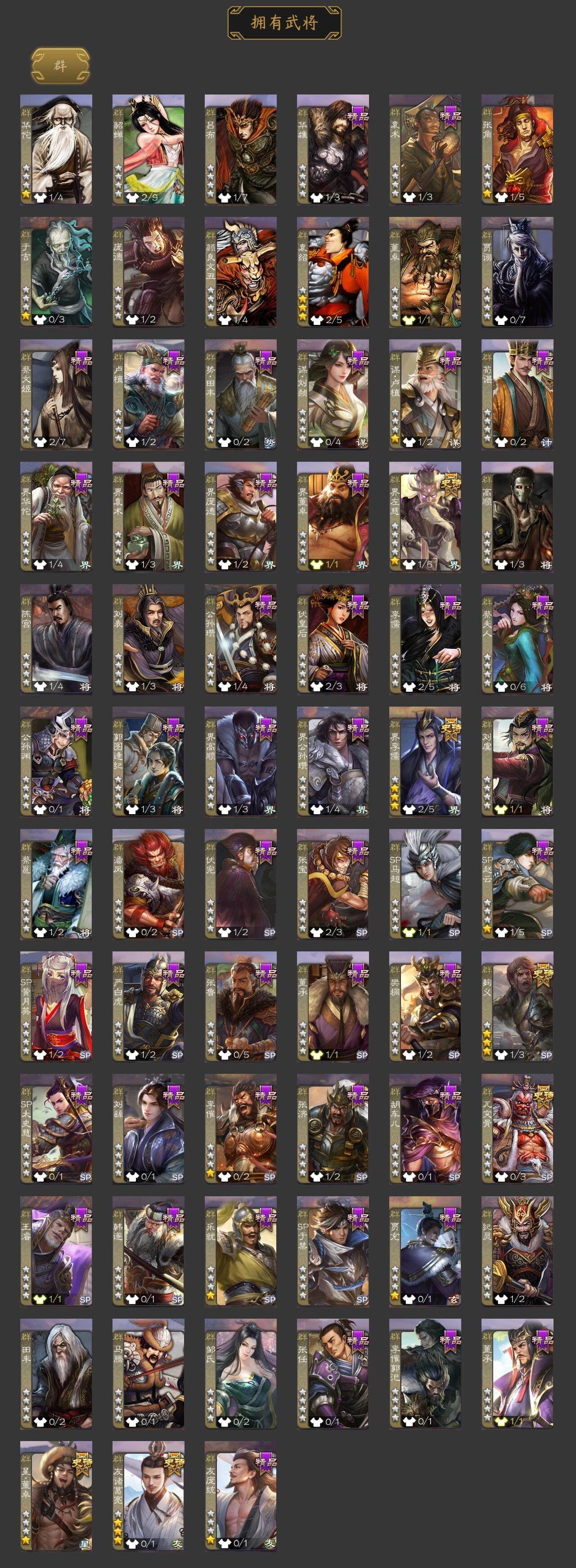 神吕布,曹髦,星周不疑,陈琳,曹纯,戏志才,清河公主,势辛宪英,程昱,文鸯,麹义,界左慈,界李儒,友诸葛亮,星董卓,兀突骨,势夏侯尚,SP关羽,SP蔡文姬,乐进,曹昂,诸葛诞,朱灵,文聘,SP姜维,张春华,钟会,曹冲,郭淮,满宠,界王异,界曹操,界司马懿,界夏侯惇,界张辽,界许褚,界