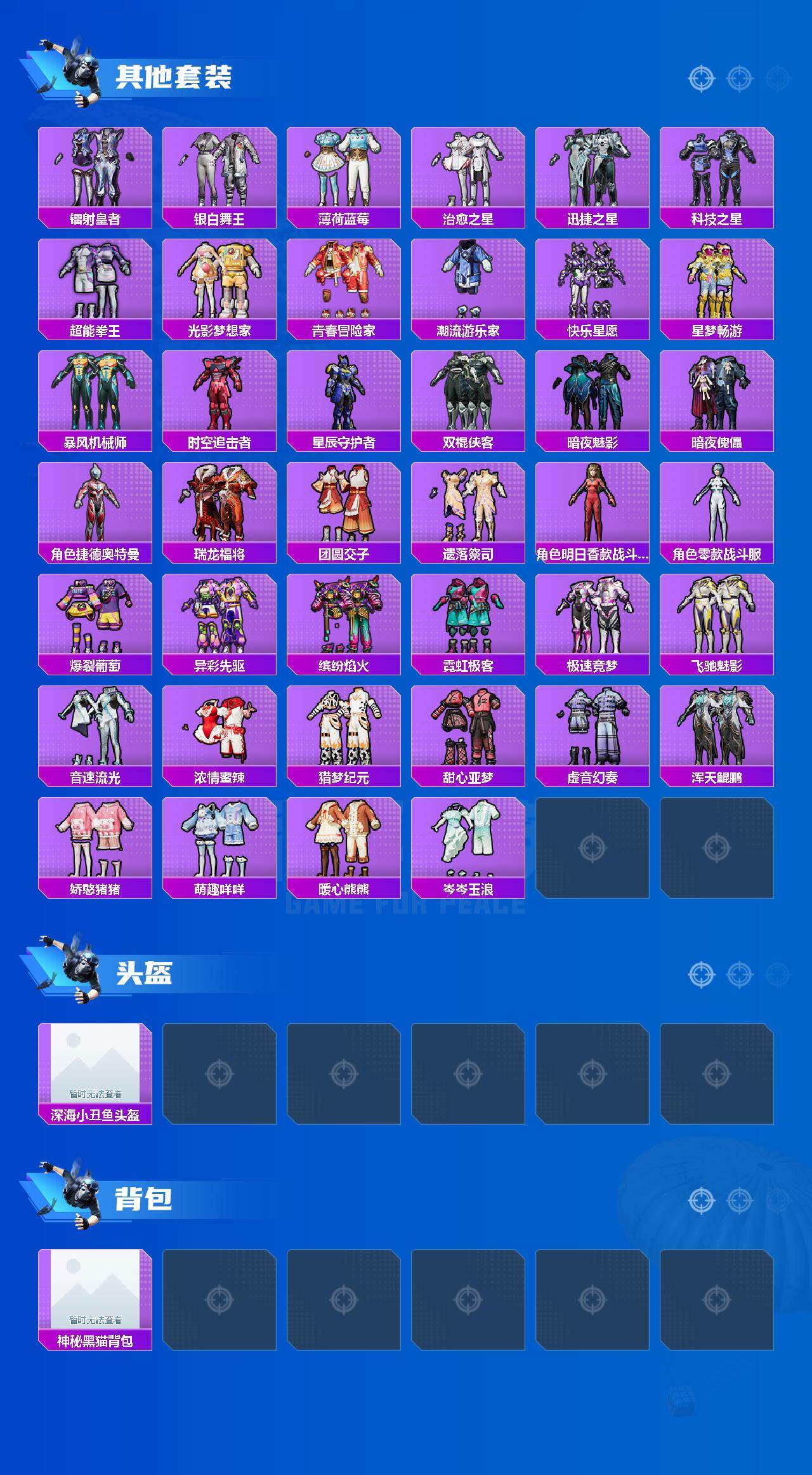 【热门品类】:粉装-梦幻火箭,套装-浪漫天命,套装-派对舞王,套装-深海小丑鱼,套装-奇异狩猎者,套装-金羽特工,旭日初心兜帽大衣,套装-暗影哥特,M416-星际漫游