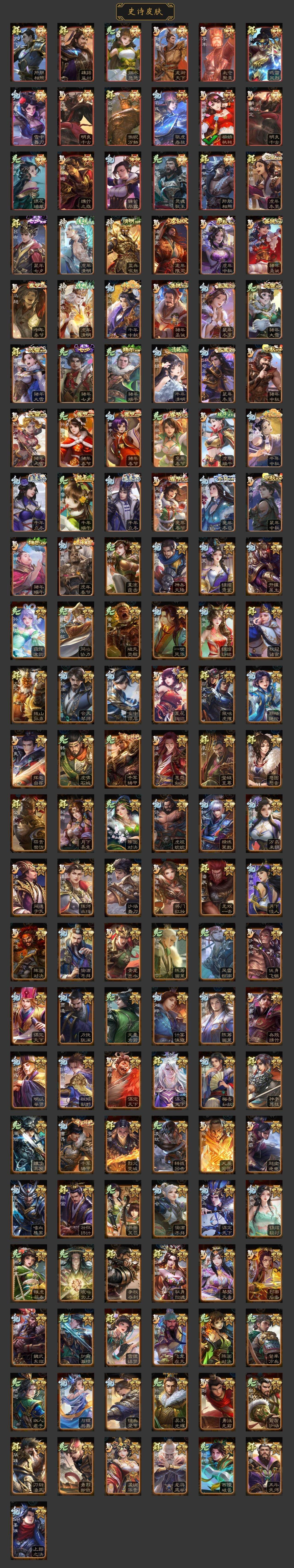 神曹操,神吕布,神赵云,神刘备,神甘宁,神张辽,神郭嘉,神太史慈,神孙策,神荀彧,SP司马昭,王粲,谋曹操,杨修,王元姬,王凌,马钧,界钟会,界于禁,界曹真,嵇康,郝昭,陈琳,曹纯,戏志才,刘晔,程昱,关索,谋诸葛亮,马云騄,谋黄忠,谋夏侯氏,谋赵云,谋马超,诸葛瞻,周群,赵襄,