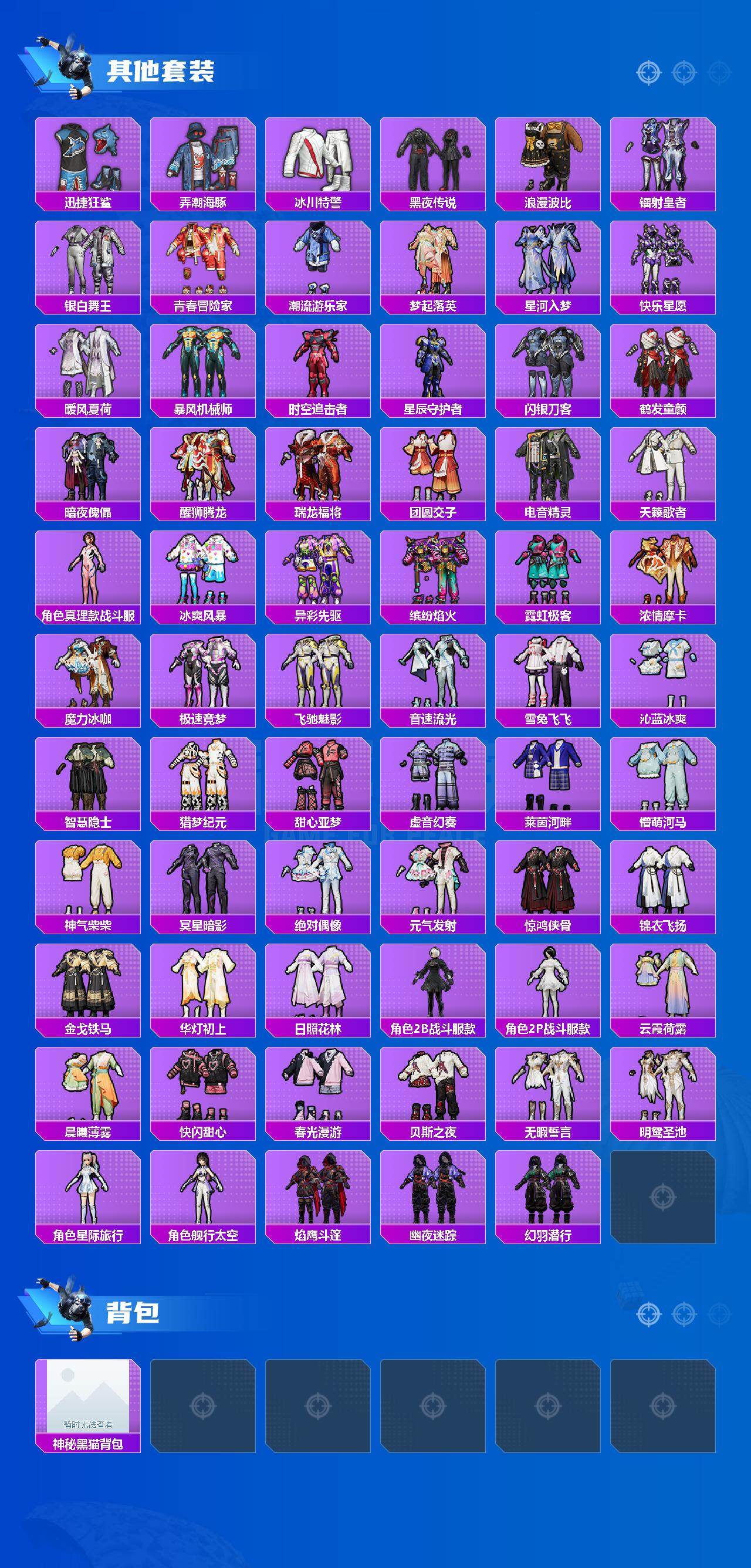 【热门品类】:套装-浪漫天命,套装-小丑鱼,角色-2B战斗服款,角色-2P战斗服款,套装-龟仙人,套装-浪漫波比