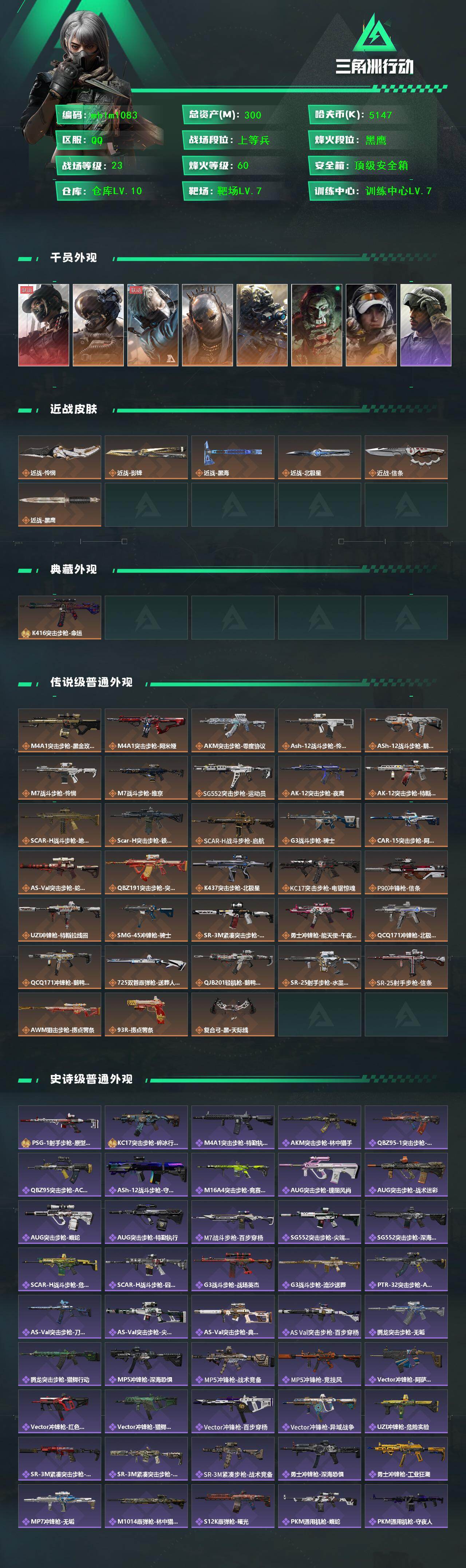 300m总资产-5147k哈伏币-60烽火等级-黑鹰-23战场等级-上等兵