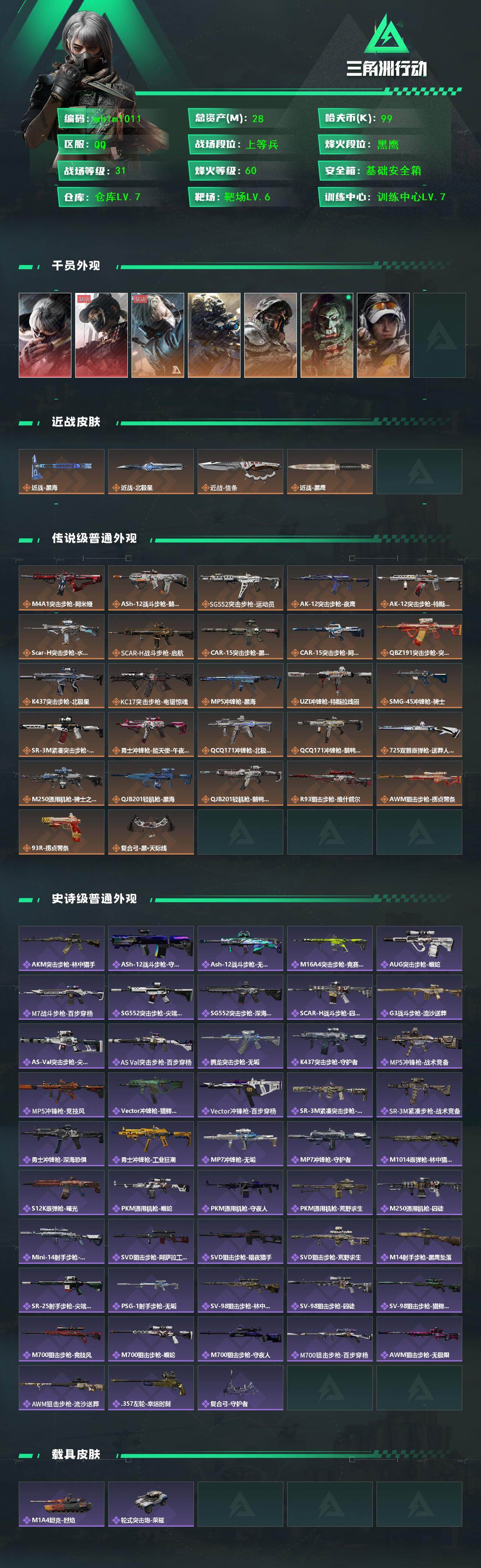 28m总资产-99k哈伏币-60烽火等级-黑鹰-31战场等级-上等兵【干员外