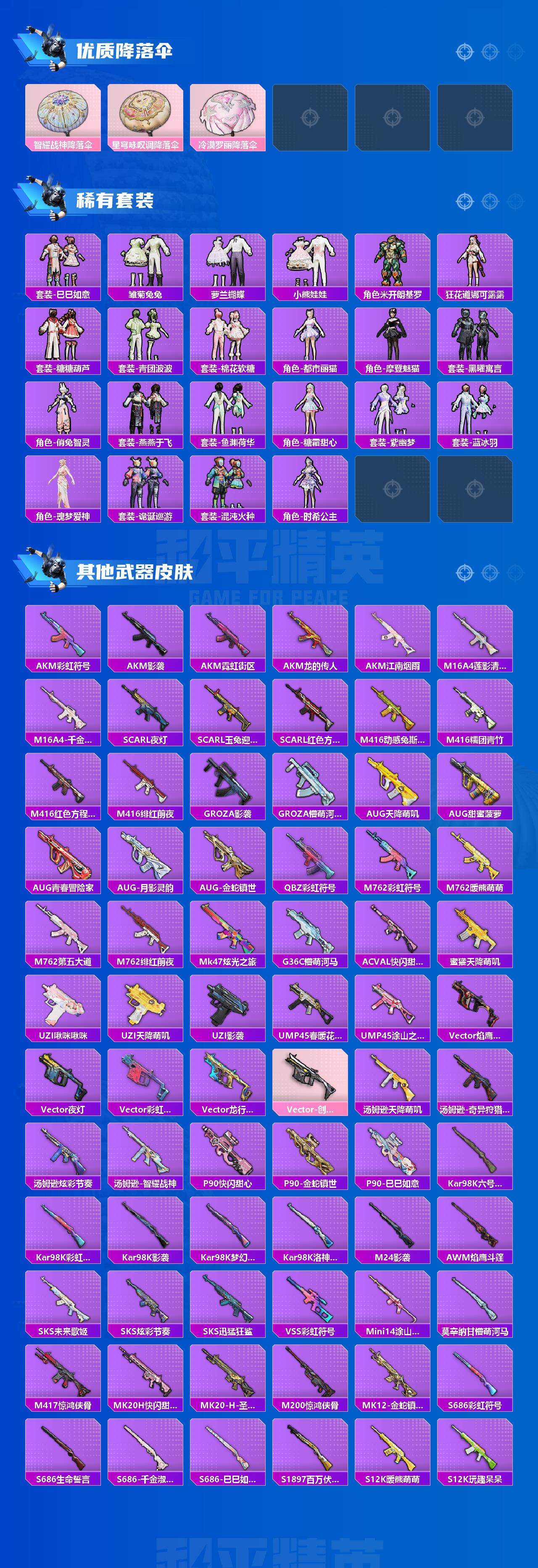 苹果 手Q-1神装-12粉装-13特效枪-3载具-7粉色飞行器-71510热力值-11王牌印记-132套装-194枪皮