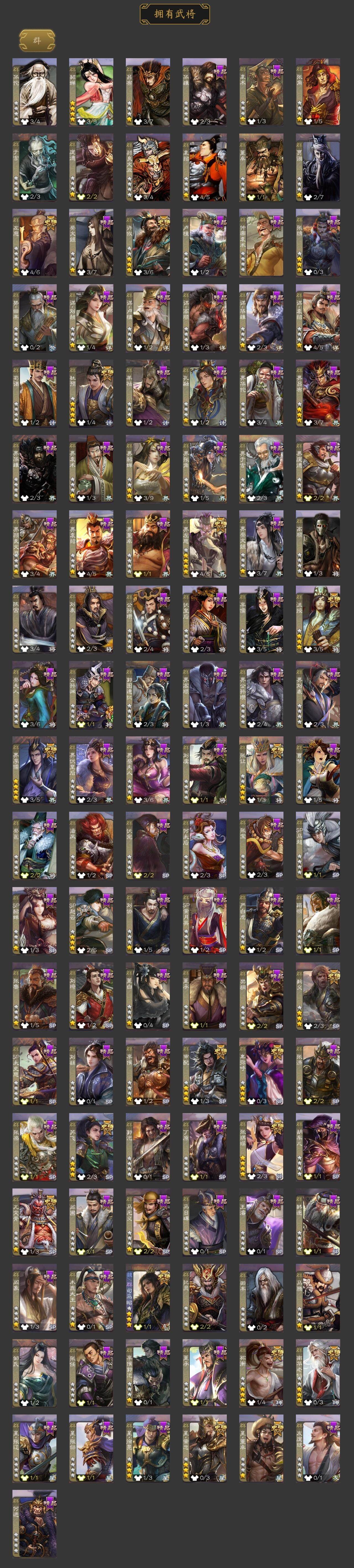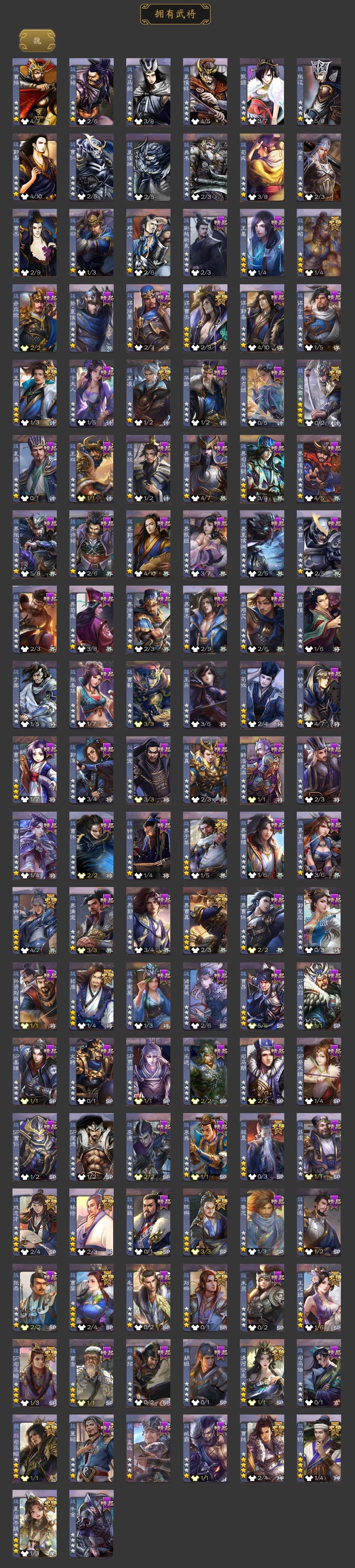 神吕布,神赵云,神陆逊,神甘宁,神张辽,神荀彧,神诸葛亮,SP司马昭,星周不疑,王粲,杨修,王元姬,王凌,马钧,界钟会,界于禁,界曹真,嵇康,郝昭,陈琳,曹婴,曹纯,戏志才,刘晔,谋曹丕,清河公主,程昱,关索,马云騄,谋黄忠,谋赵云,谋马超,诸葛瞻,周群,赵襄,张星彩,王平,沙