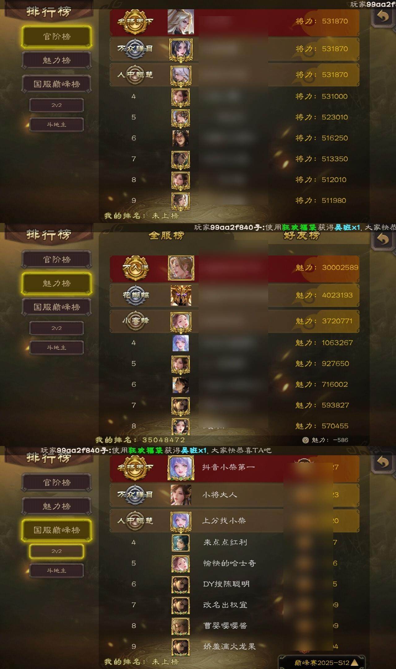 官阶:大将军;VIP等级:VIP13;史诗武将数量:61;动态皮肤数量:48