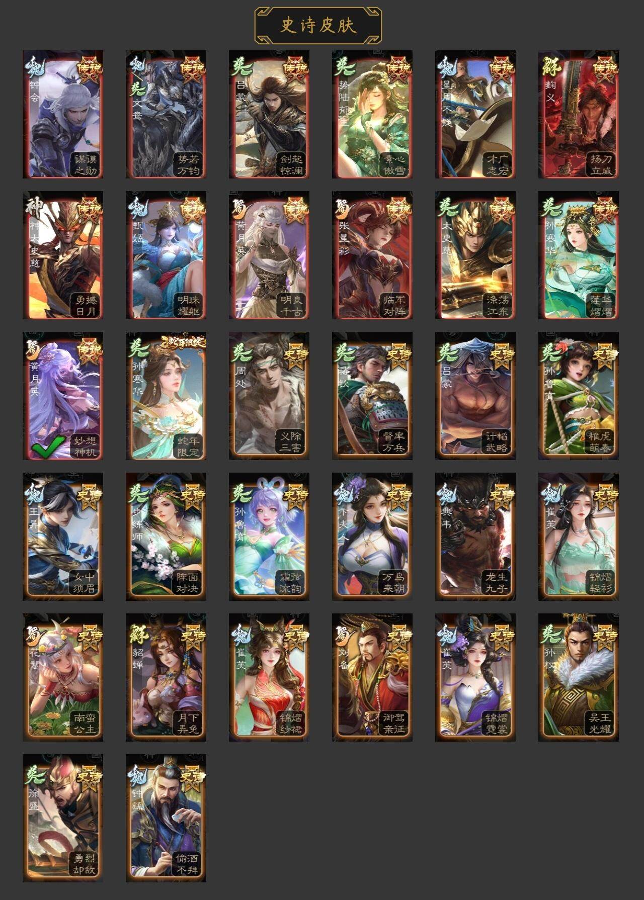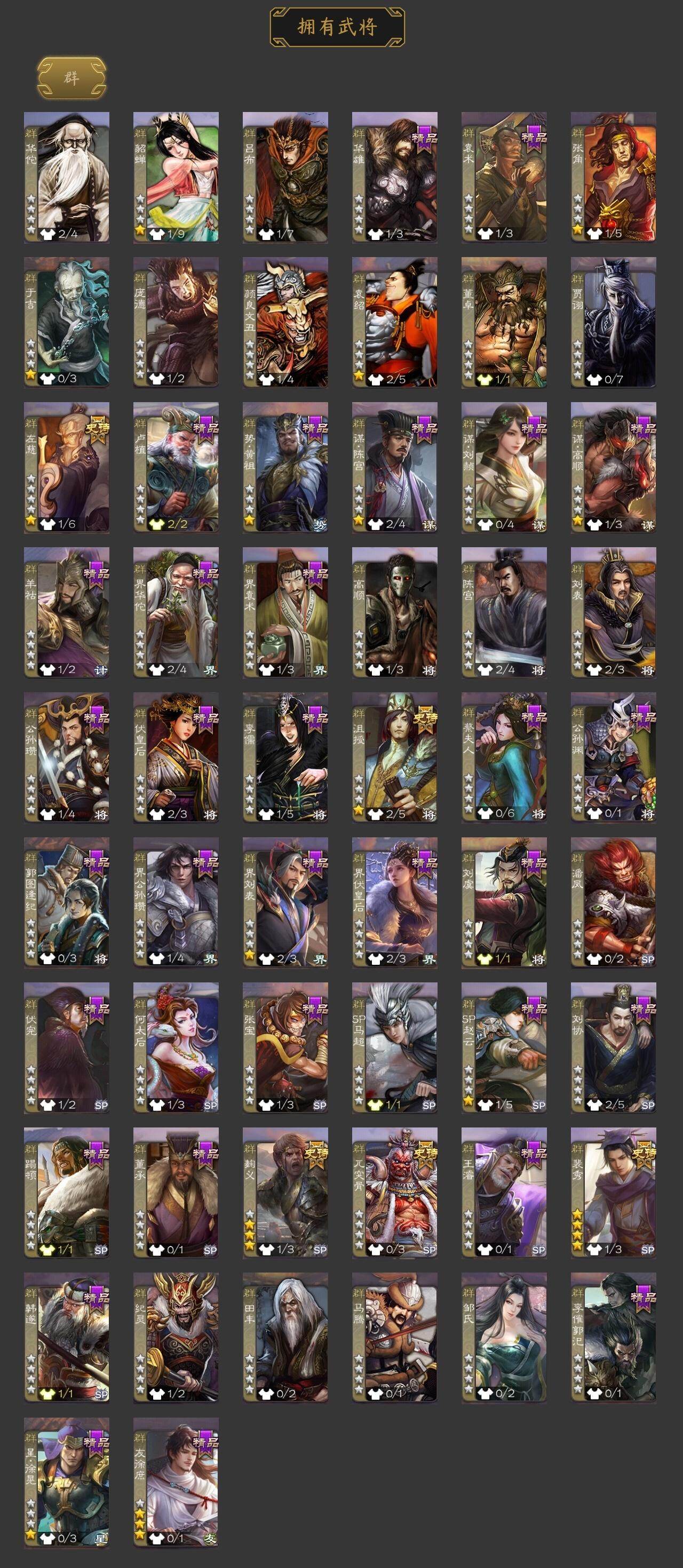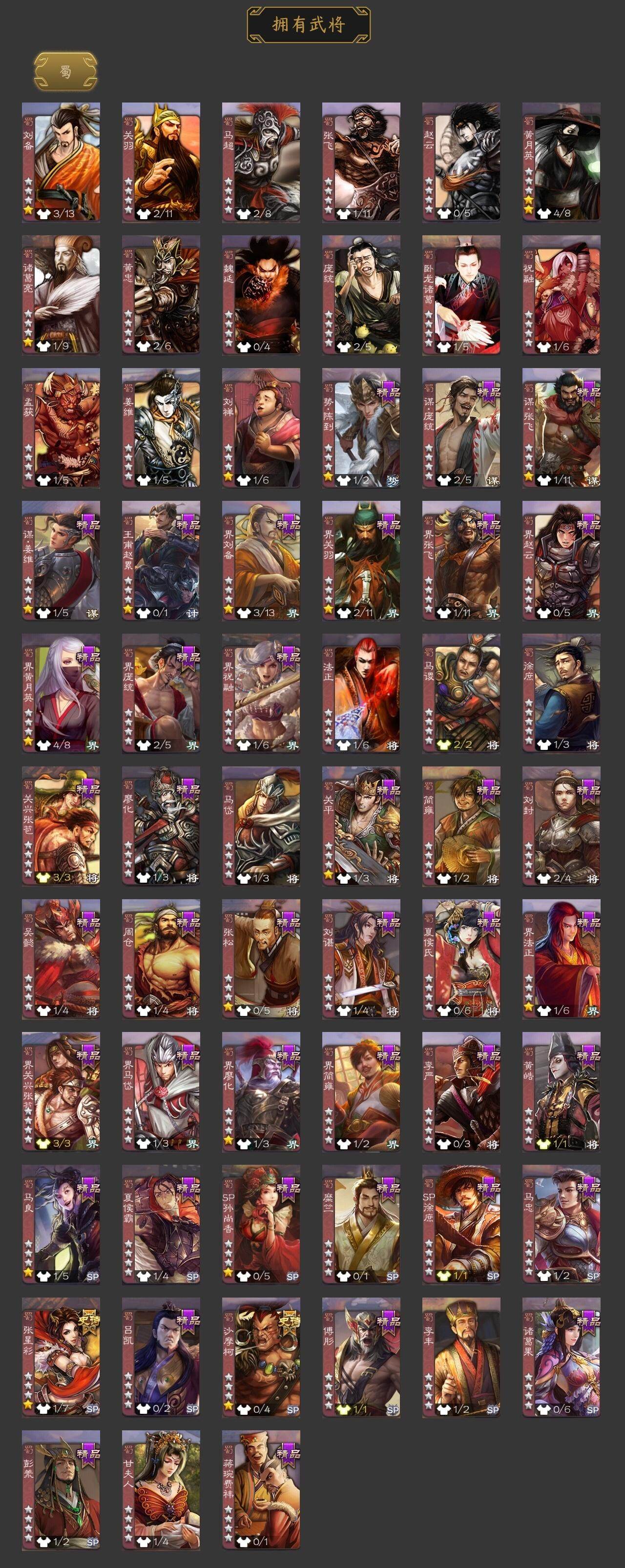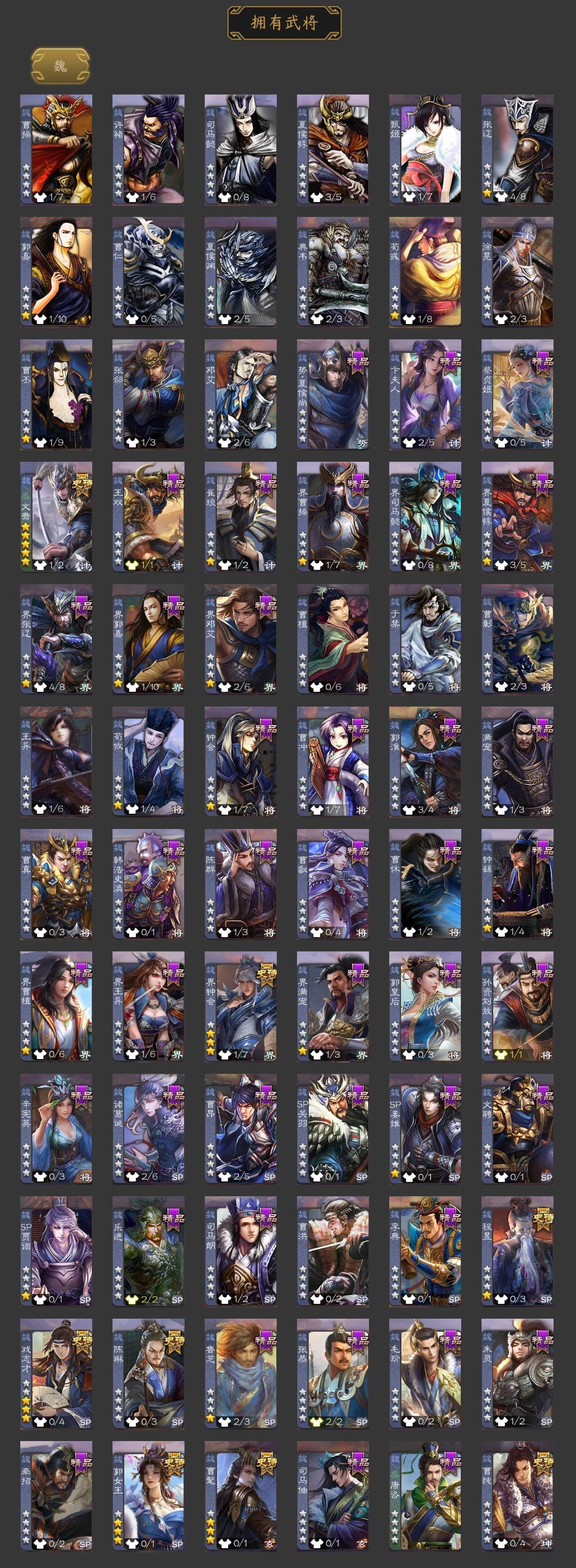 神赵云,神张辽,曹髦,郭女王,界钟会,陈琳,曹纯,戏志才,程昱,张星彩,沙摩柯,势陆郁生,文鸯,裴秀,左慈,麹义,沮授,兀突骨,神周瑜,势夏侯尚,SP关羽,乐进,曹昂,诸葛诞,朱灵,文聘,SP姜维,钟会,曹冲,郭淮,满宠,界王异,界曹操,界司马懿,界夏侯惇,界张辽,界郭嘉,李典,曹真,韩