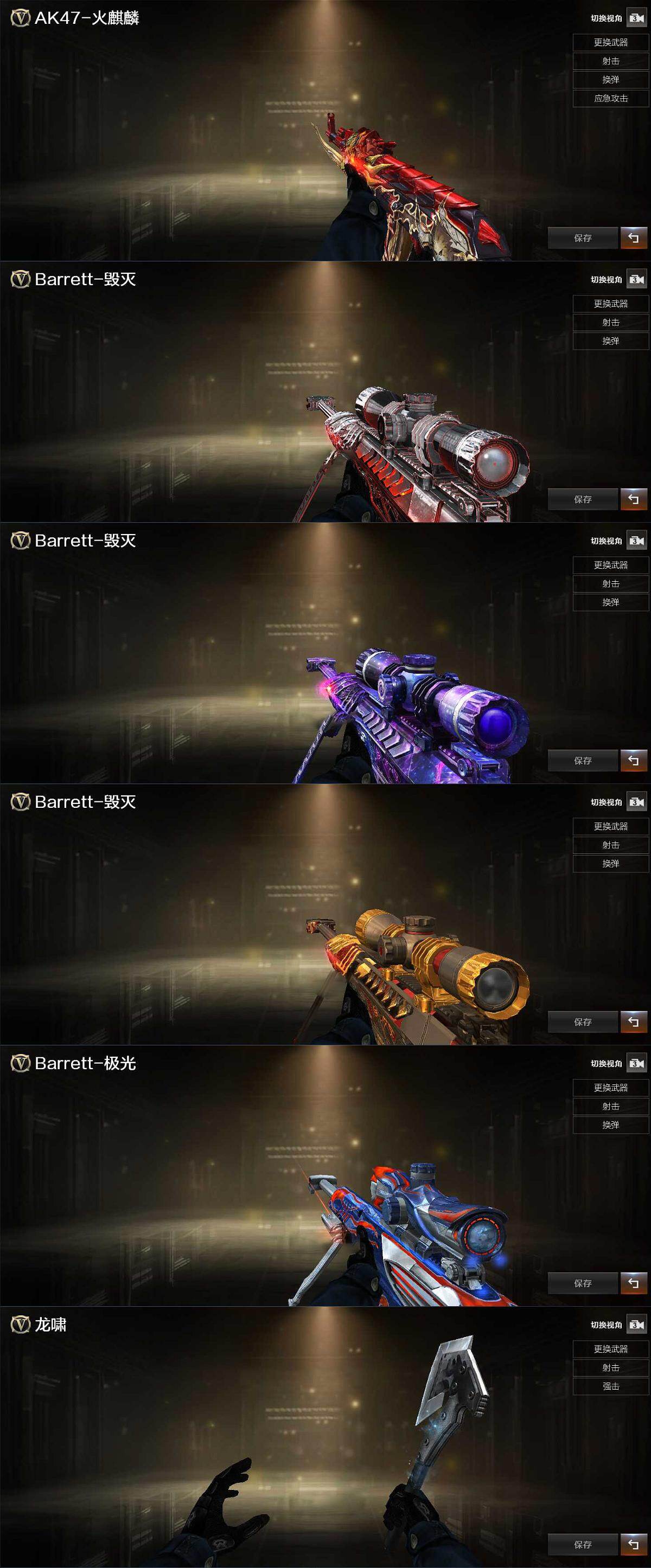 【热门武器】:M200-竞技荣光,M4A1-黑骑士,加特林-炼狱,雷神-小红,裁决-雪莉杨,USP-雷暴