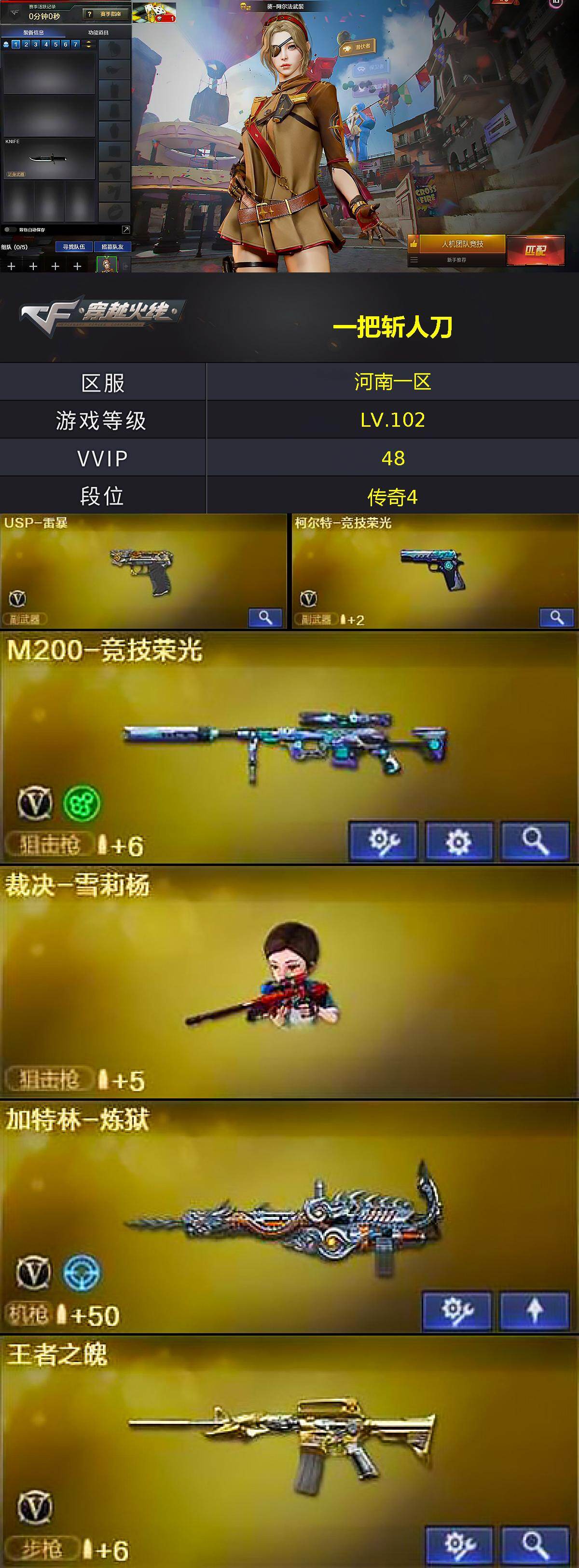 河南一区-54V-3王者武器数-0炫金武器数【热门武器】:M200-竞技荣光