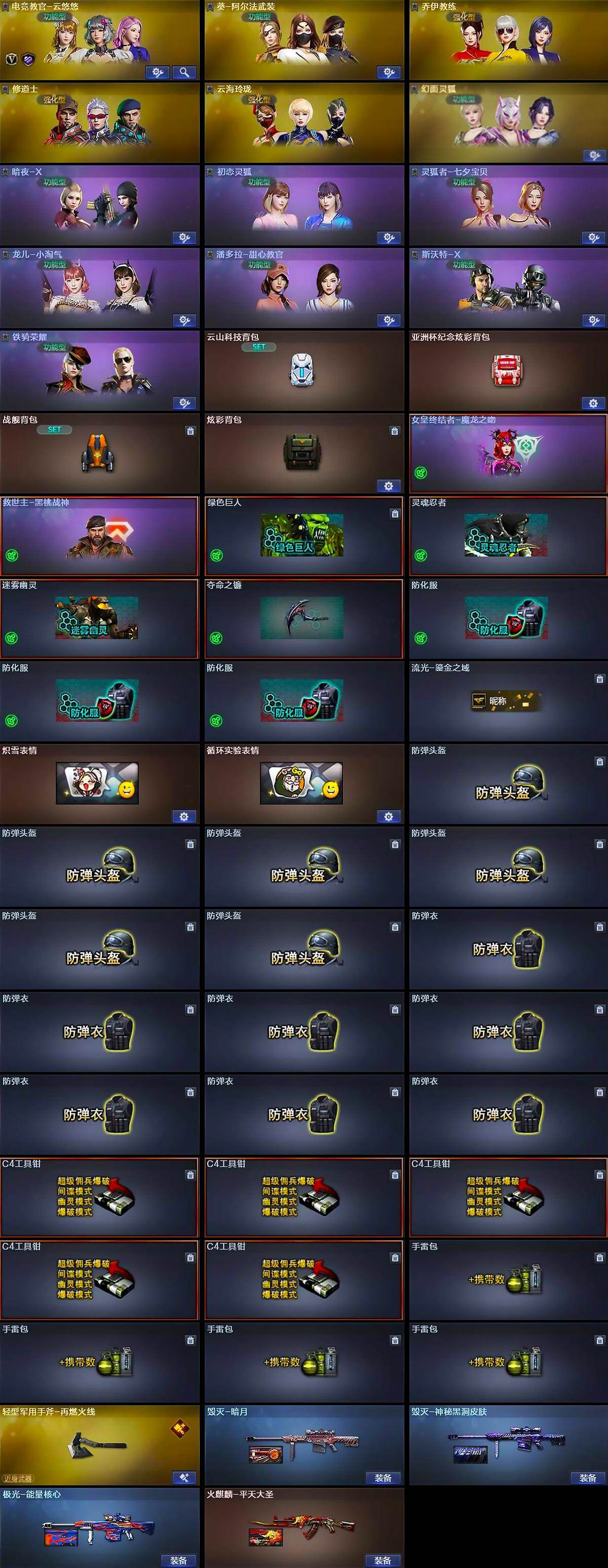 【皮肤】:火麒麟-平天大圣,毁灭-暗月,毁灭-神秘黑洞皮肤,毁灭-英雄计划 皮肤,极光-能量核心,轻型军用手斧-再燃火线