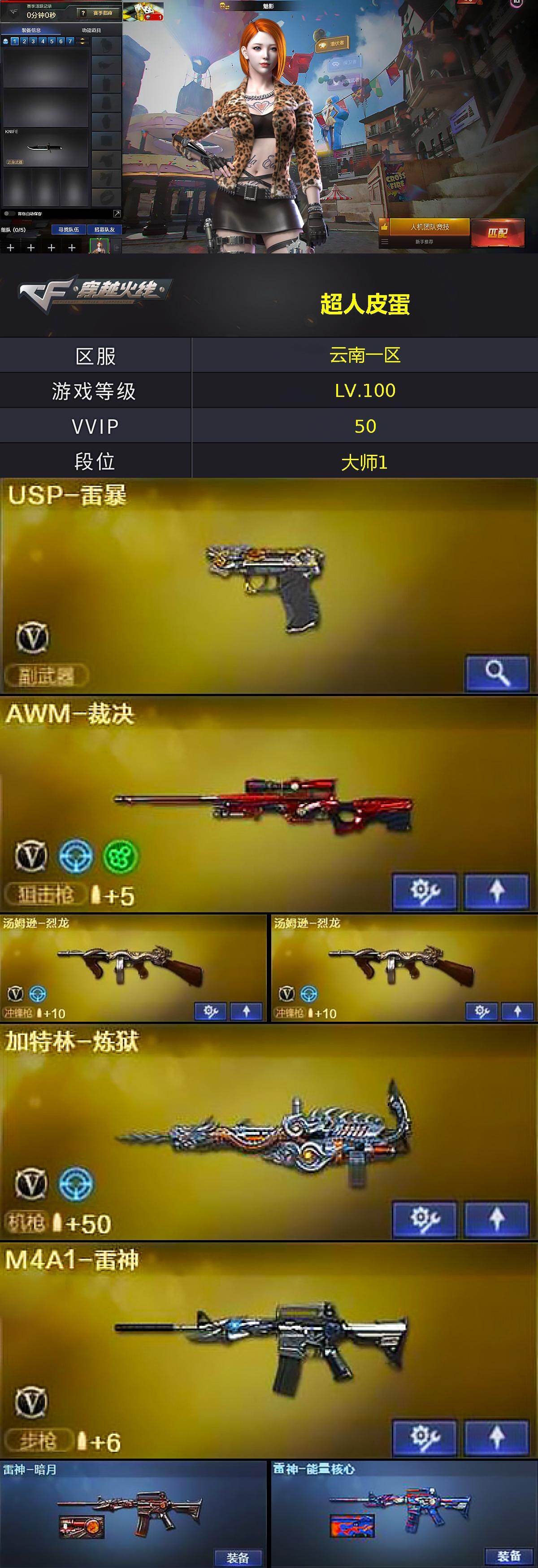 云南一区-52V-5王者武器数-3炫金武器数【热门武器】:汤姆逊-烈龙*2,