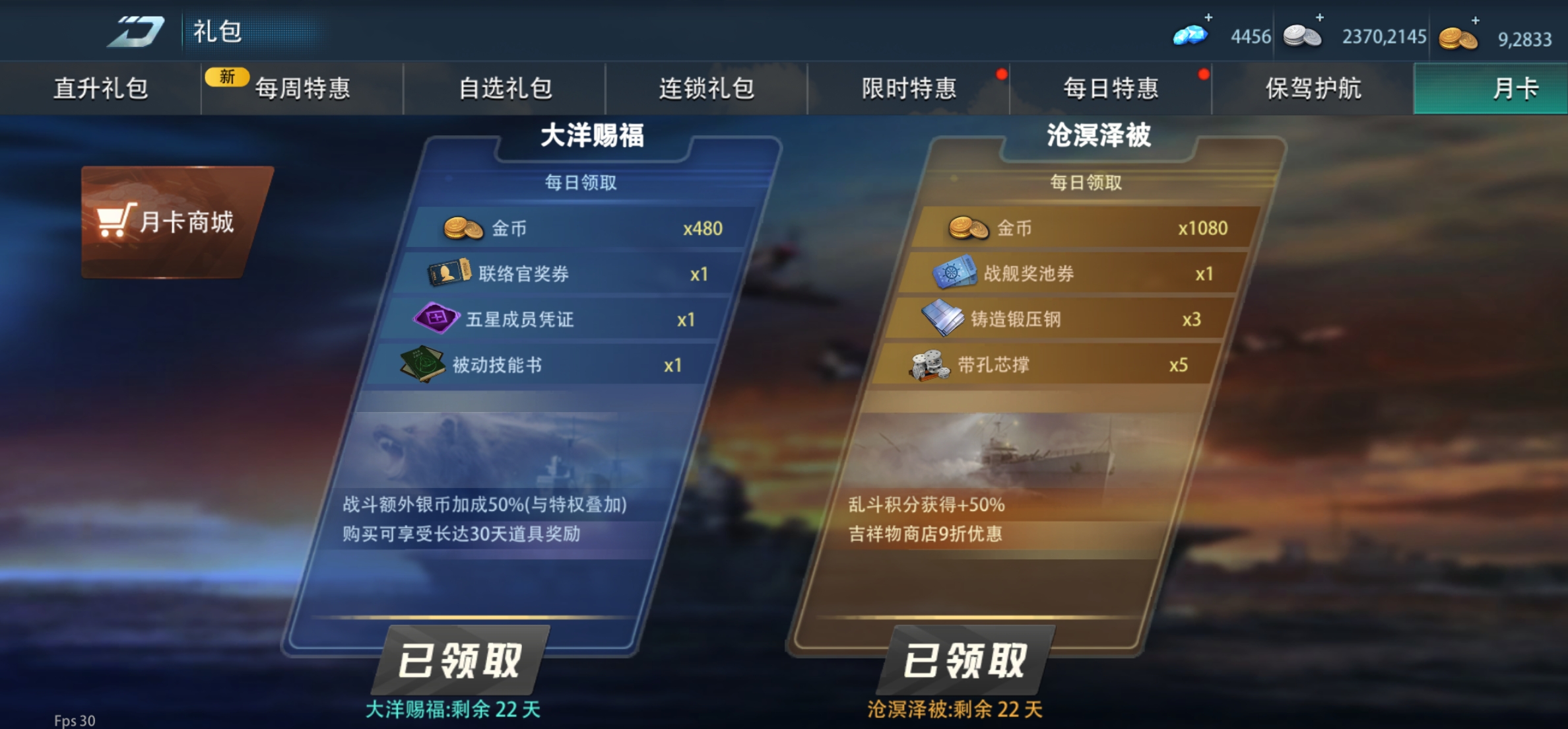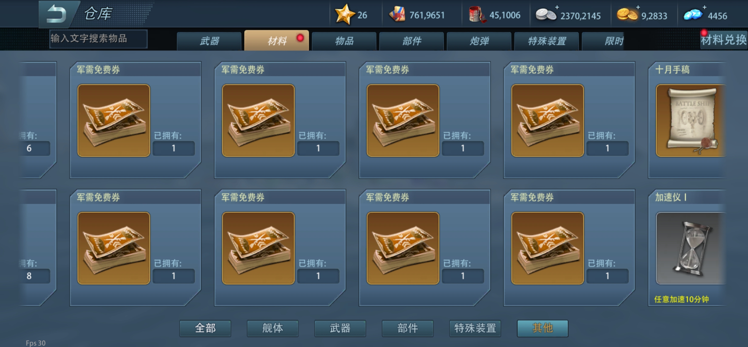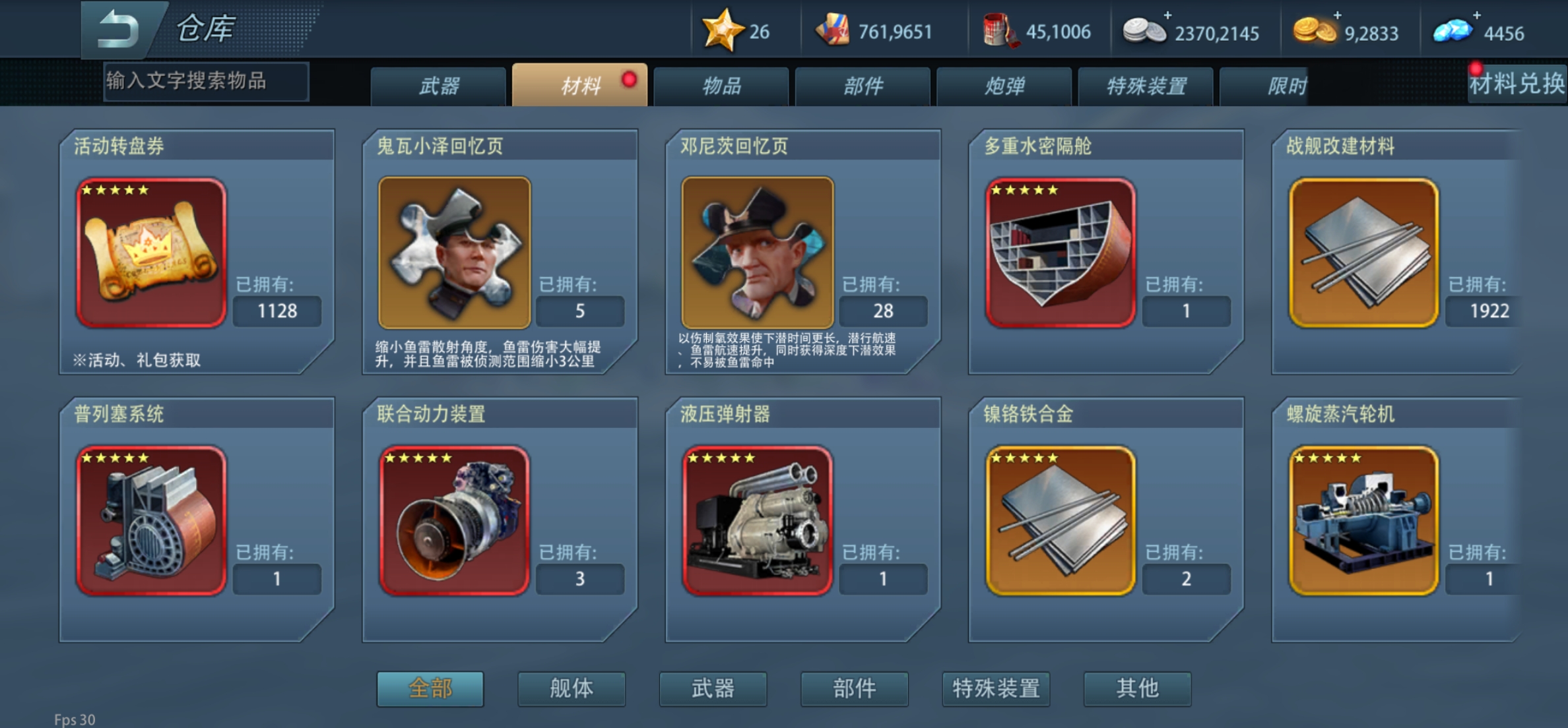 仓库有2000多黑金,有S2部件,四士气大振,改良舰体压缩战役CD,有双月卡,开了任务战令令