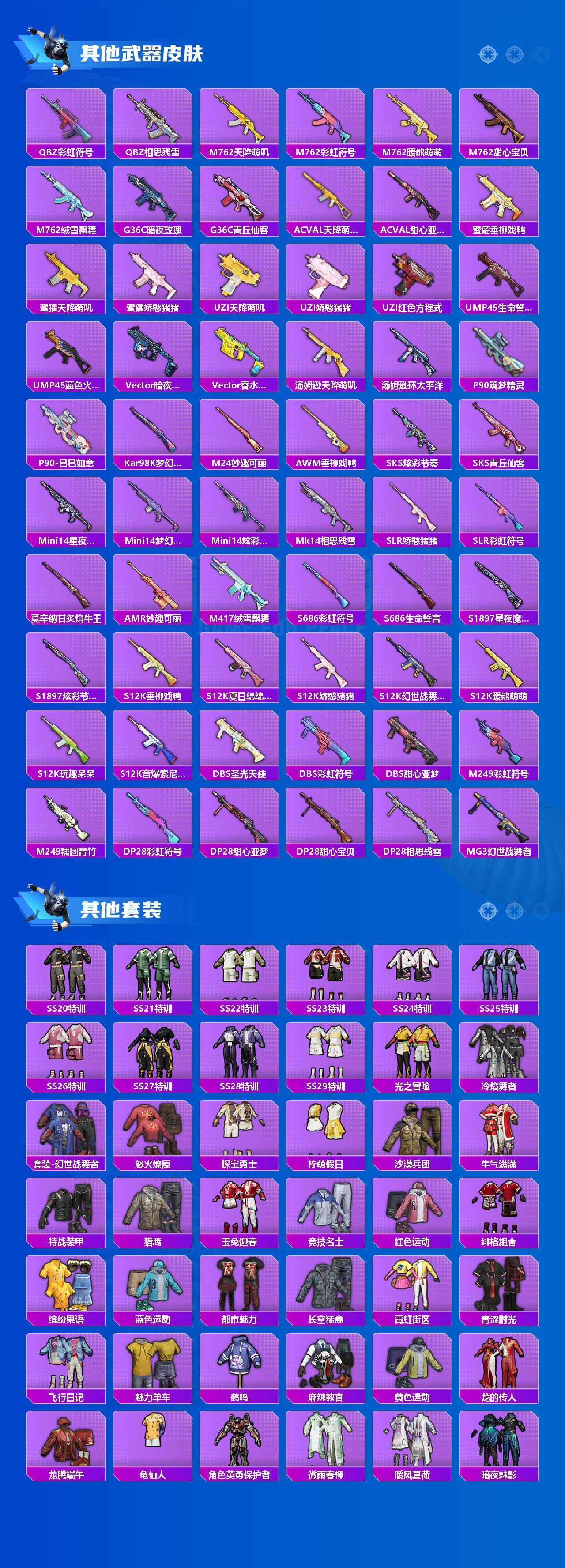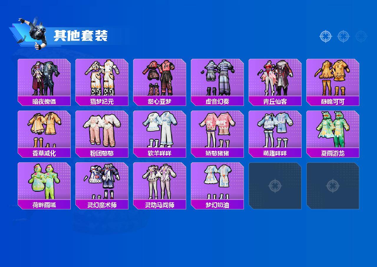 【粉色套装】:粉装-宝贝奶油派,粉装-天使彩虹糖,粉装-梦幻火箭,粉装-炙焰红王,粉装-暗夜玫瑰,粉装-星夜魔法师,粉装-圣光天使,粉装-妙趣可丽,角色-复
