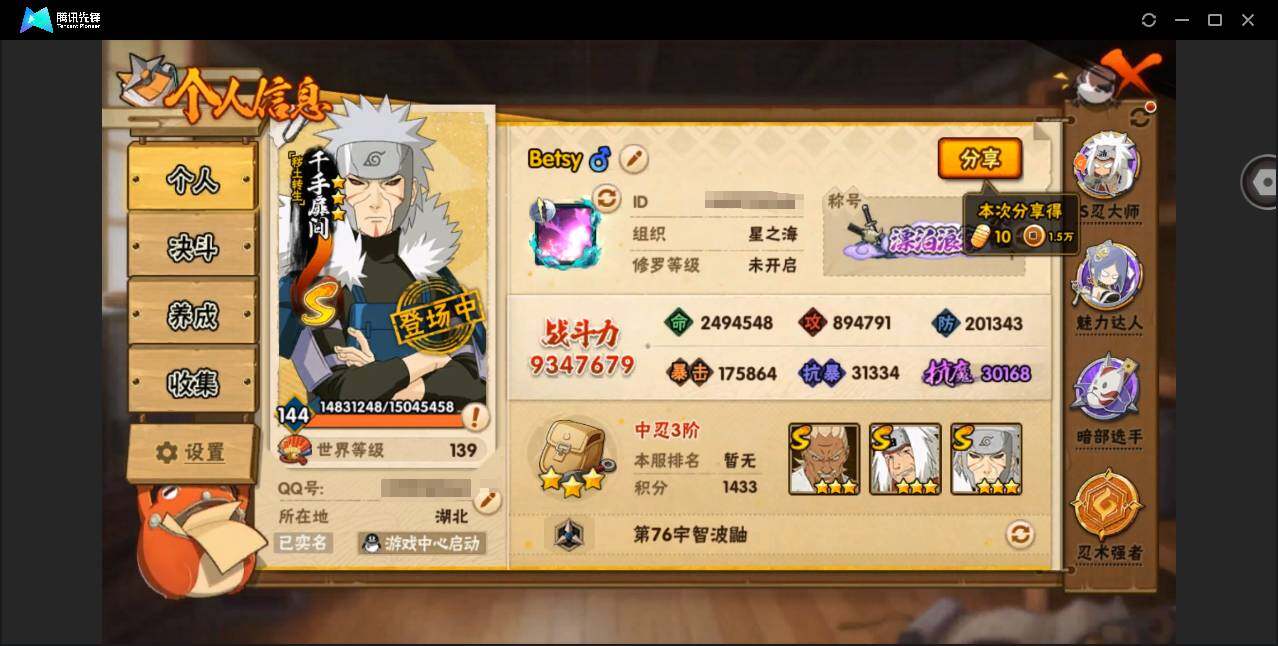 【编号30534 可秒换绑】【21s38a 黑绝 漂带 六道带图五影斑!】 21S级忍者数-38A级忍者数【S级忍者】:猿飞日斩「秽土转生」(3星),千手扉间「秽土转生」(3星),宇智波斑「秽土转生·解」(3星),春野樱「忍界大战」(3星),艾「忍界大战」(3星),宇智波鼬「须佐能乎」(3星),旗木卡卡西「须佐能乎」(3星),自来也「舞之豪杰」(3星),自来也「传说中的三忍」(3星),波风水门(3星),神秘面具男「红夜之刃」(3星),漩涡鸣人「九喇嘛连结」(3星),佩恩「天道」(3星),宇智波佐