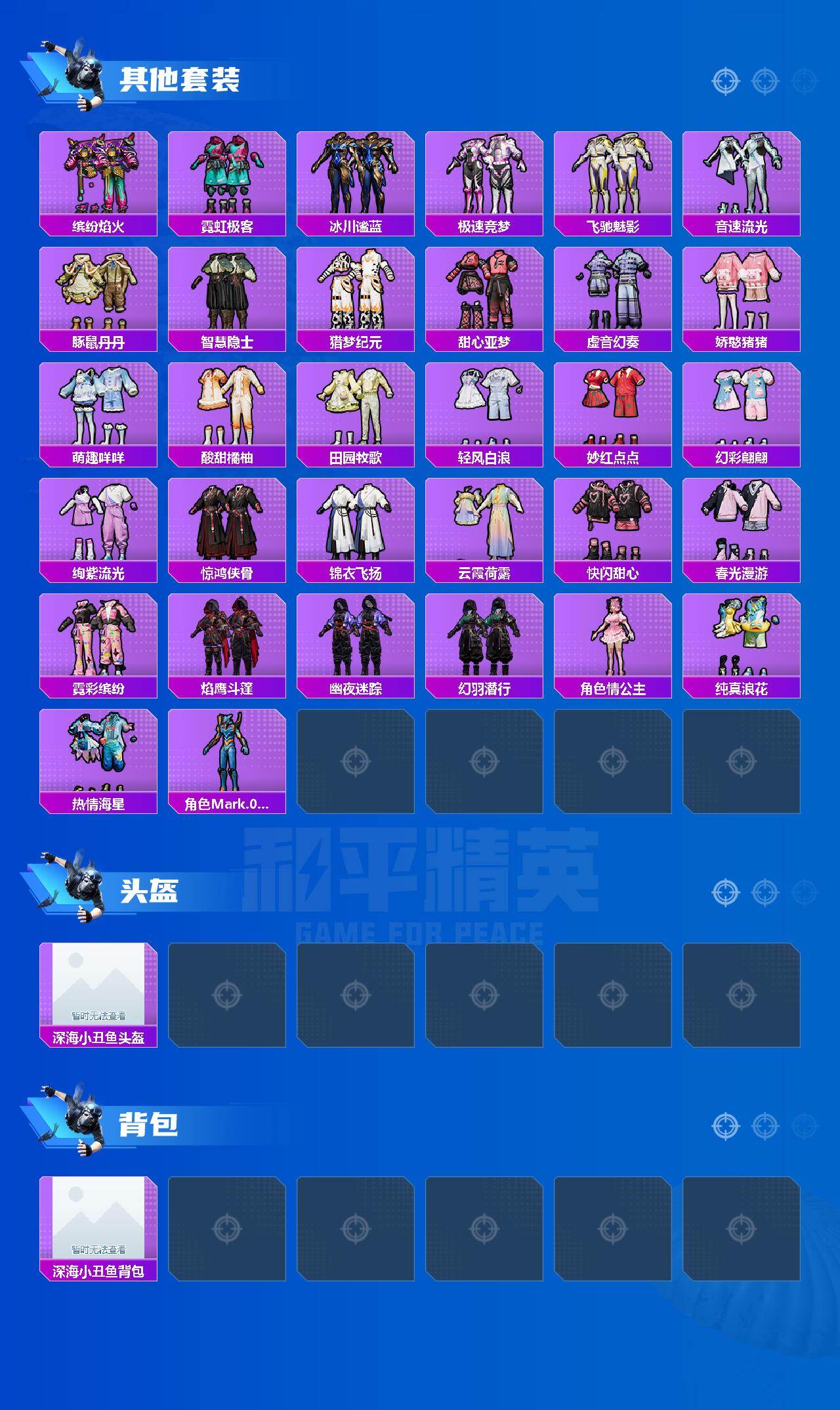 【热门品类】:套装-浪漫天命,套装-派对舞王,套装-小丑鱼,套装-奇异狩猎者,套装-龟仙人,套装-粉红小猪,角色-Mark.06