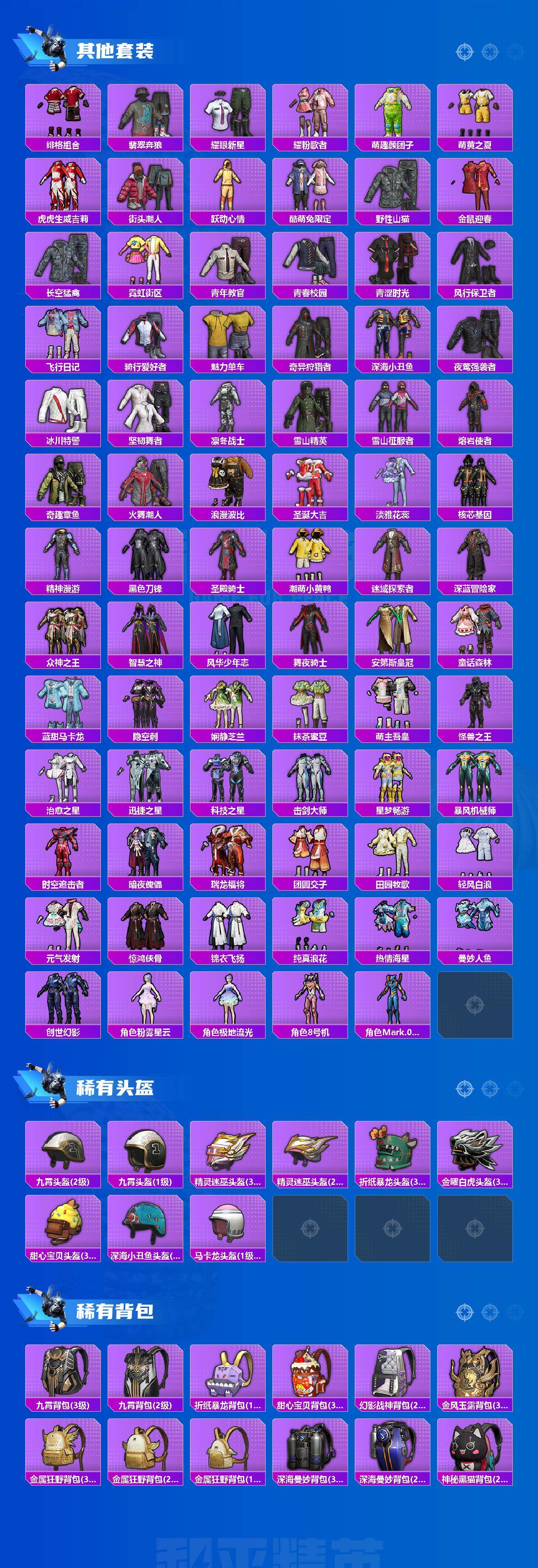 【粉色套装】:粉装-古堡领主,粉装-银刃赛罗,角色-呆萌星弥,角色-阿尔茜,粉装-炫光之旅,套装-创世·救赎,角色-星梦奇缘,角色-初号机 觉醒Ver.,角色-冷漠罗丽,角色-奇迹舞步 美琪,角色-奇迹舞步 美雪
