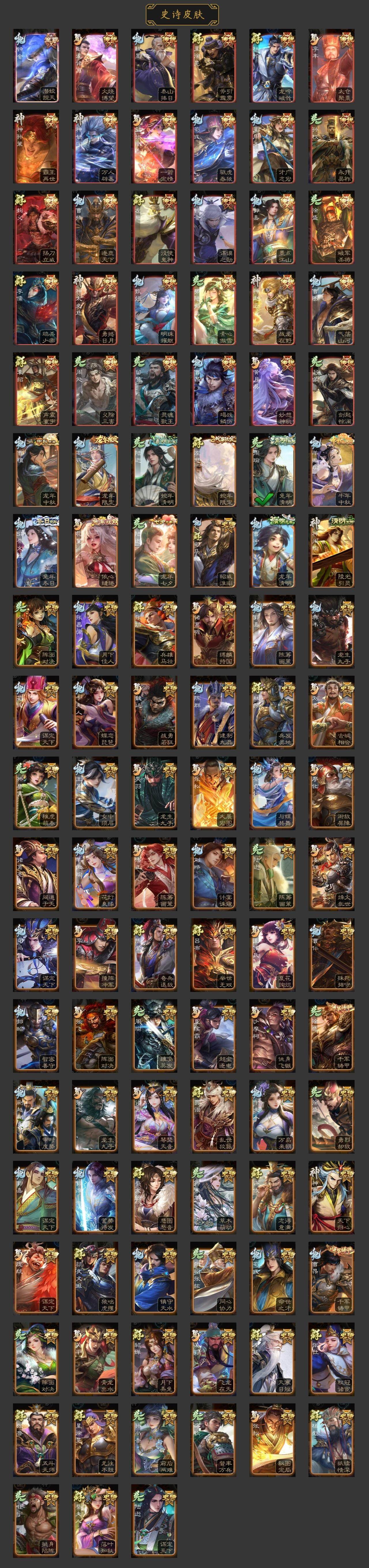 神吕布,神赵云,神陆逊,神甘宁,神孙策,神周瑜,星周不疑,谋曹仁,张昌蒲,杨修,羊徽瑜,王元姬,魏-司马昭,界钟会,曹婴,曹纯,戏志才,刘晔,谋诸葛亮,谋刘备,谋赵云,谋马超,诸葛瞻,张星彩,沙摩柯,谯周,花鬘,董允,留赞,界徐盛,势陆郁生,谋黄月英,界沮授,左慈,张让,麹义,界