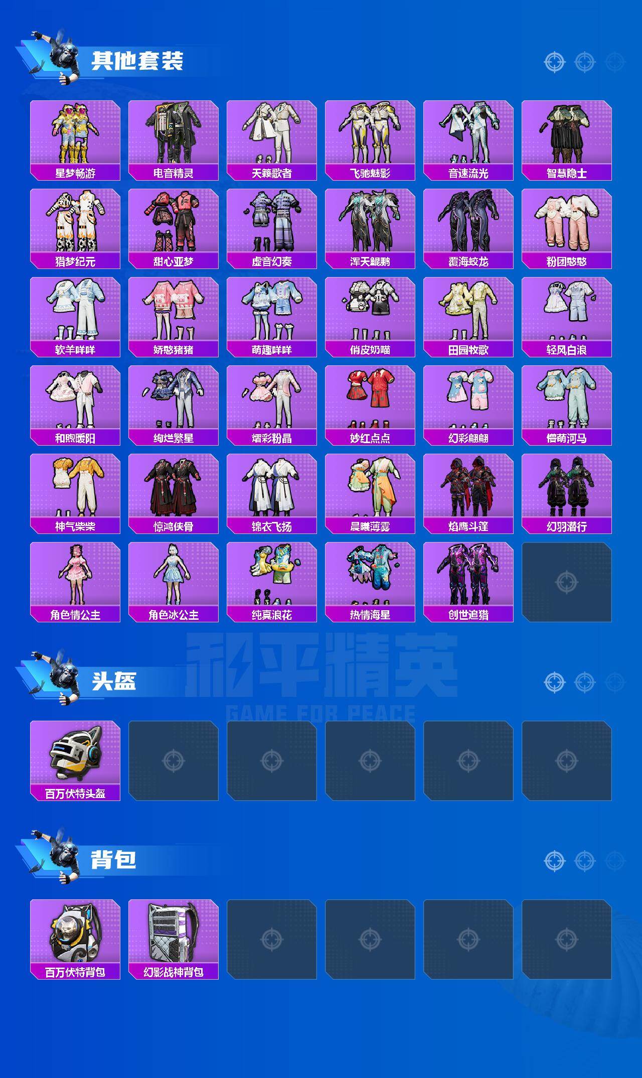 【粉色套装】:粉装-幻影战神,粉装-星之彼岸,角色-复仇流浪者,粉装-飒粉甜心,粉装-未来领航者