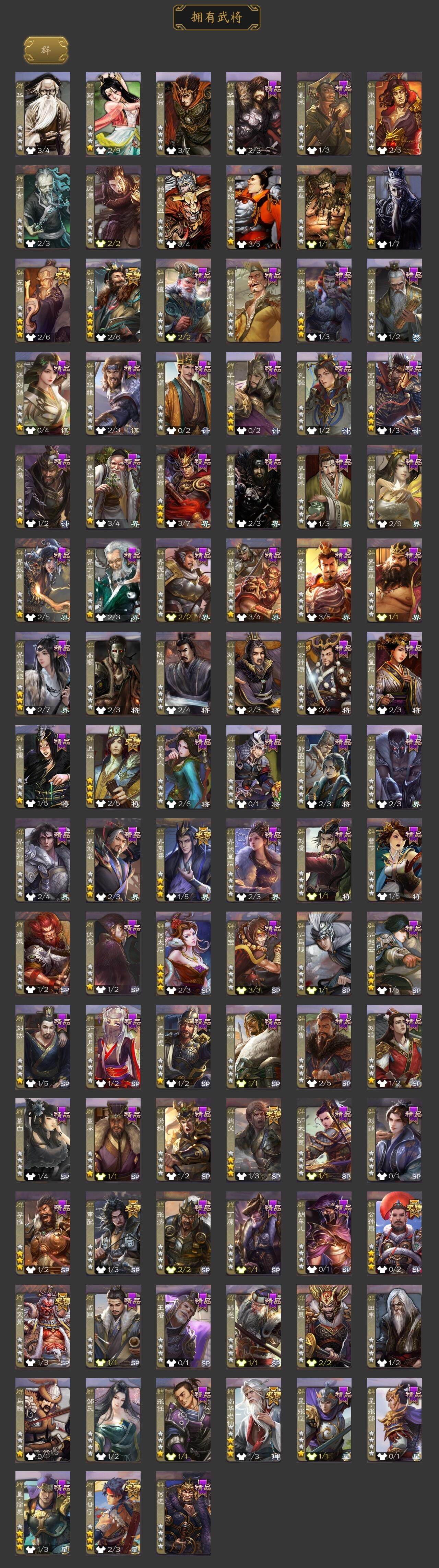 神赵云,神甘宁,神张辽,神诸葛亮,杨修,王元姬,界钟会,界于禁,嵇康,曹纯,戏志才,刘晔,程昱,谋马超,周群,张星彩,沙摩柯,傅佥,花鬘,董允,孙皓,骆统,留赞,界朱然,界徐盛,界步练师,文鸯,左慈,星甘宁,审配,麹义,南华老仙,沮授,界李儒,公孙康,许攸,兀突骨,神吕蒙,神周瑜,