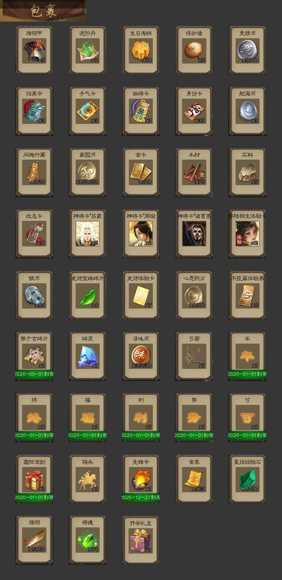 官阶:大将军;VIP等级:VIP9;史诗武将数量:46;动态皮肤数量:36;武将总数:348;史诗宝珠数量:0;将魂数量:74;神将:6;魏国史诗武将:22;蜀国史诗武将:11;吴国史诗武将:5;群史诗武将:15