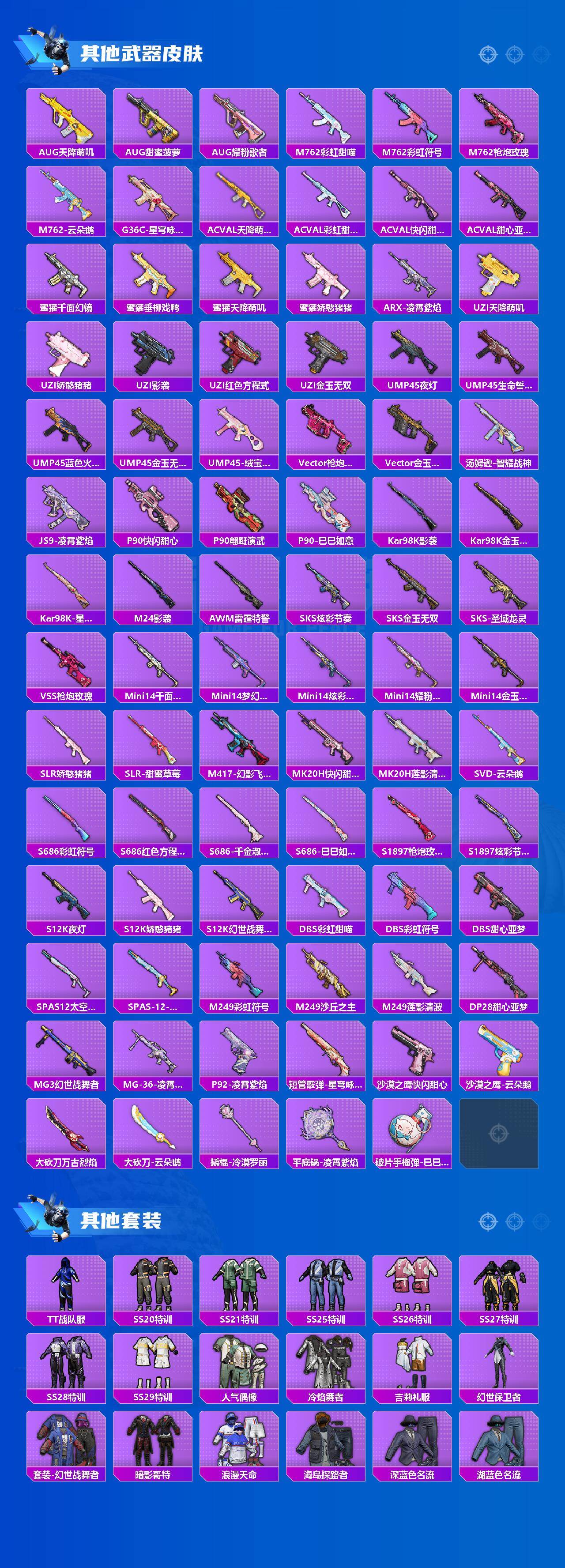 【粉色枪皮等级】:M416-五爪金龙(七级),GROZA-镜光银凌(五级),AUG-暖羊咩