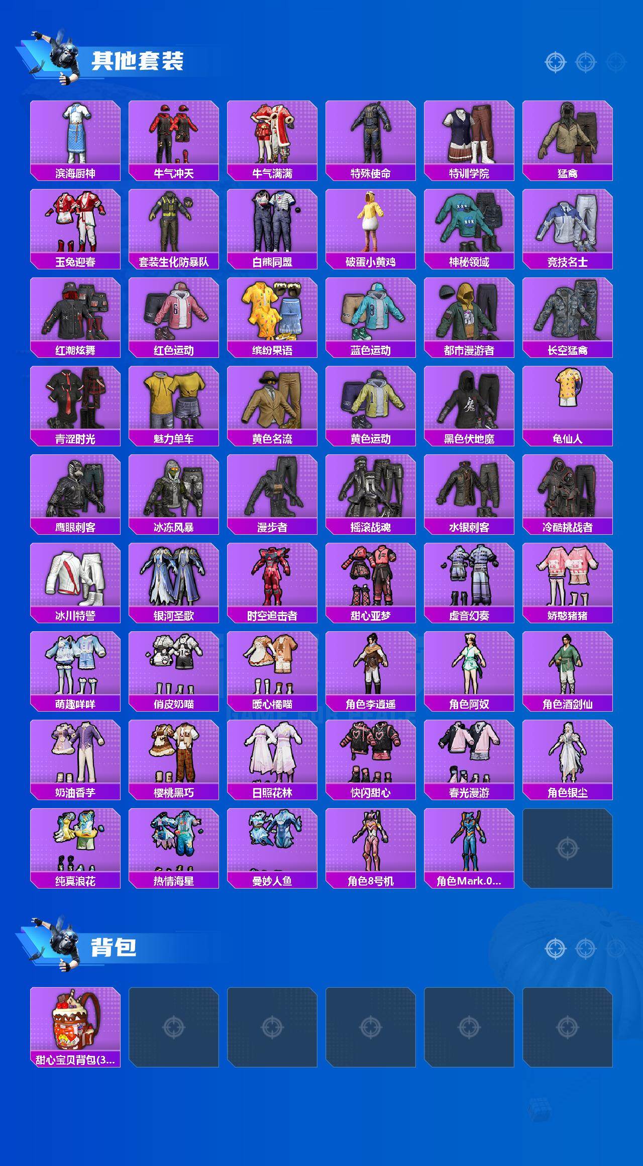 【热门品类】:套装-浪漫天命,套装-都市猎人,套装-派对舞王,套装-小丑鱼,套装-龟仙人,套装-暗影哥特,角色-8号机,角色-Mark.06