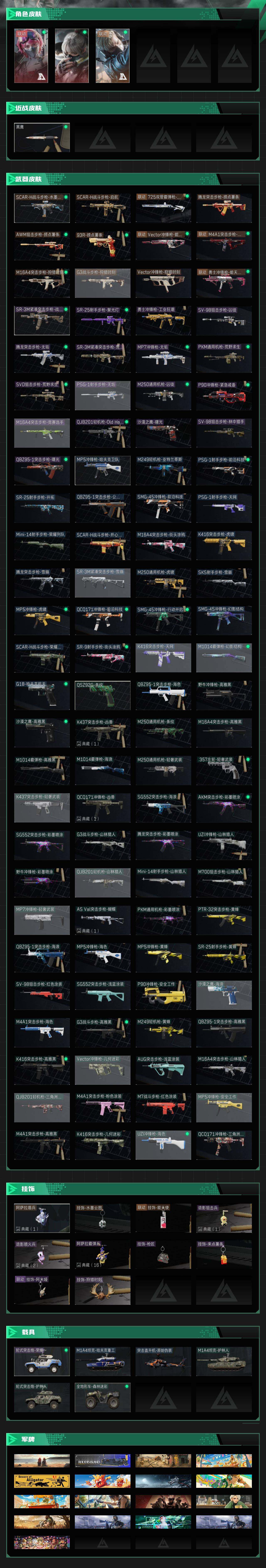 总资产:166M,哈夫币:420W,武器皮肤104,烽火60级:黑鹰,战场27级:上等兵,通行证61级:通行证免费版 【安全箱】进阶安全箱;【特勤处等级】仓库LV.8,指挥中心LV.3,训练中心LV.6,靶场LV.4,潜水中心LV.1,收藏室LV.1;【干员皮肤3】:蛊能天使午夜邮差,骇爪水墨云图,蜂医送葬人无题密令;【已有捆绑包3】:捞点薯条捆绑包,狩猎时刻捆绑包,能天使午夜邮差捆绑包;【近战皮肤】:近战武器-黑鹰;【步枪皮肤】:SCAR-H战斗步枪-水墨云图,SCAR-H战斗步枪-启航,腾龙