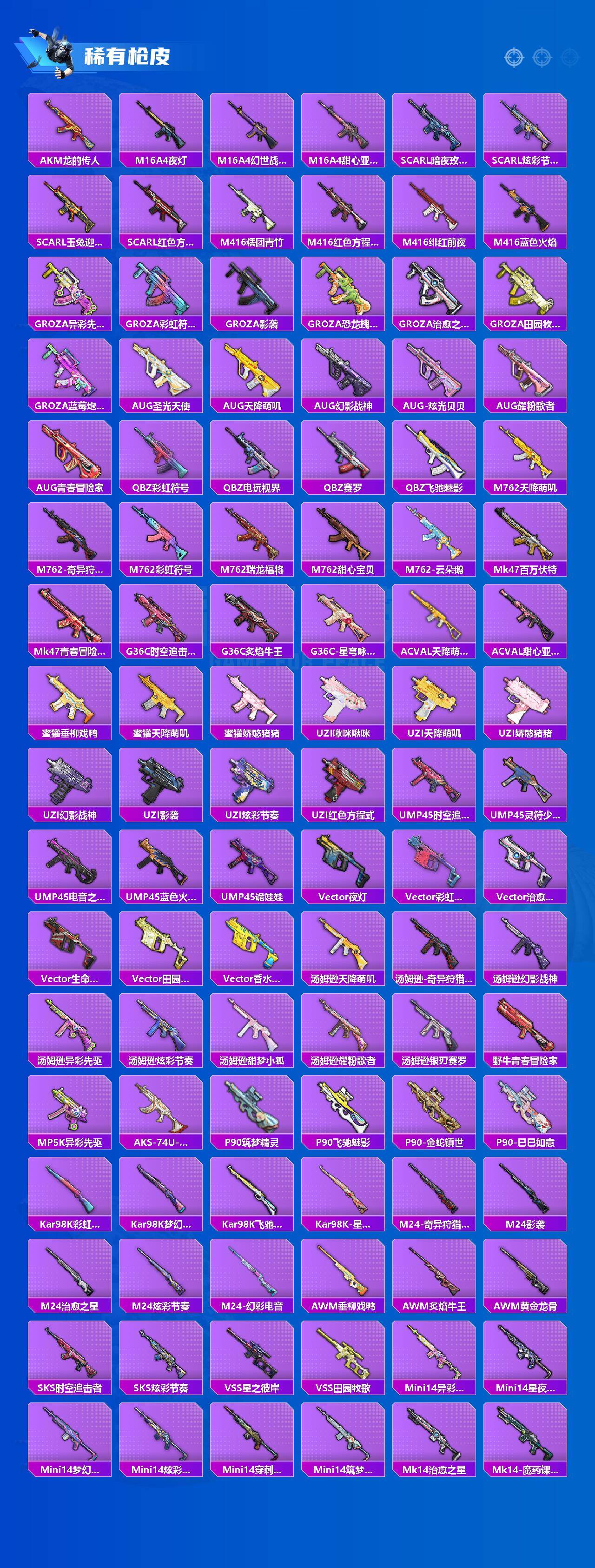 【粉色枪皮等级】:SCAR-L-梦幻火箭(六级),SCAR-L-青春物语(一级),AUG-暖羊咩咩(五级),UZI-筑梦精灵(五级),P90-沙丘之主(