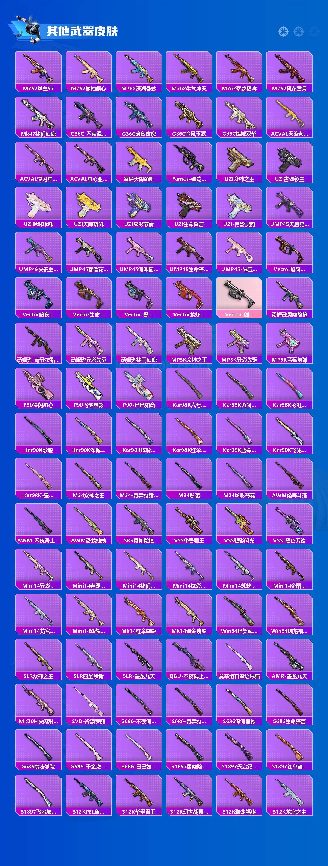 1神装-25粉装-13特效枪-6载具-11粉色飞行器-120028热力值-9王牌印记-236套装-288枪皮