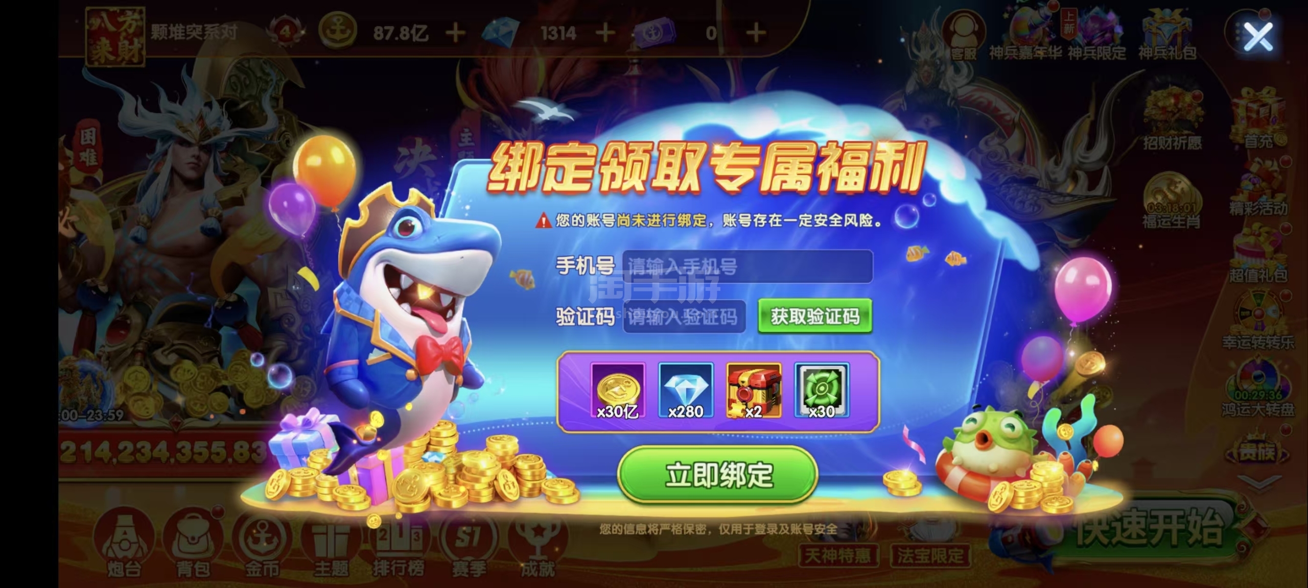 官服文字登陆-9000万炮,V4-1107加成,回归号,无绑